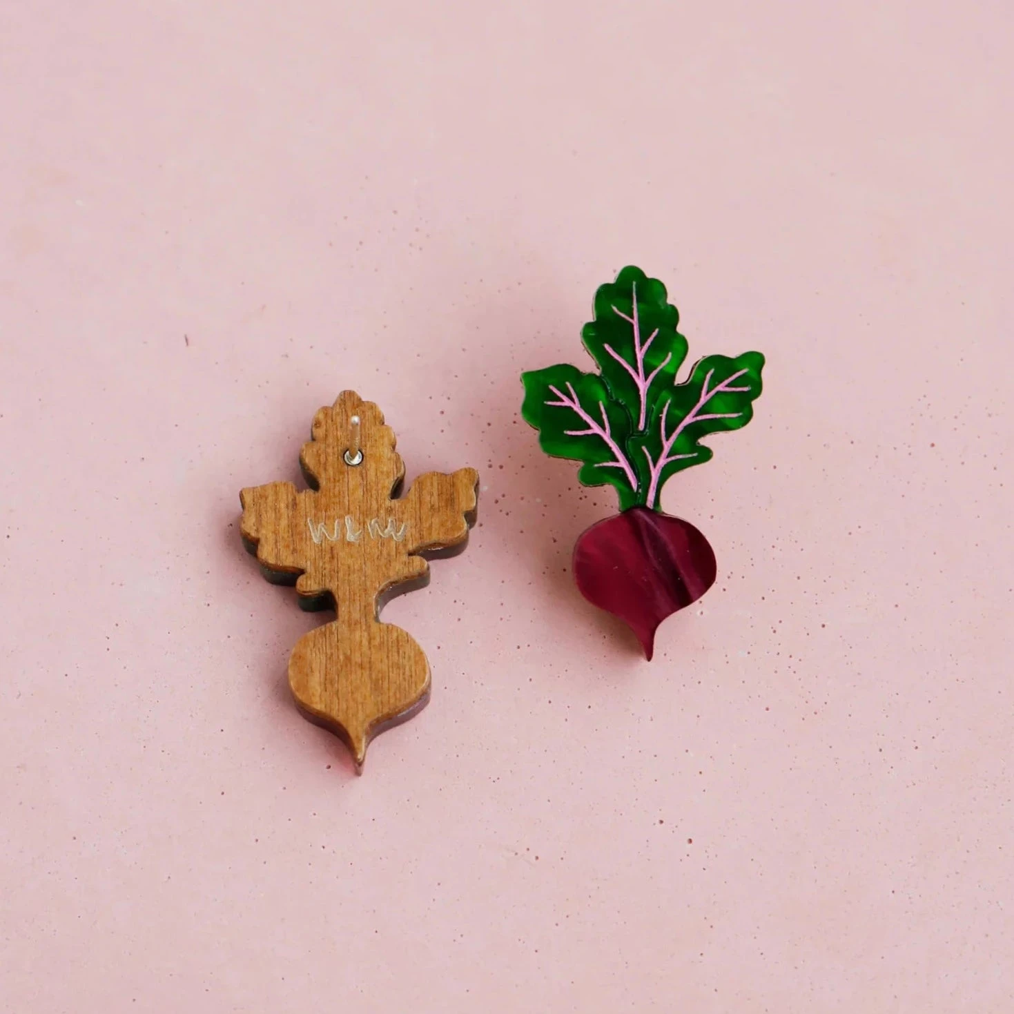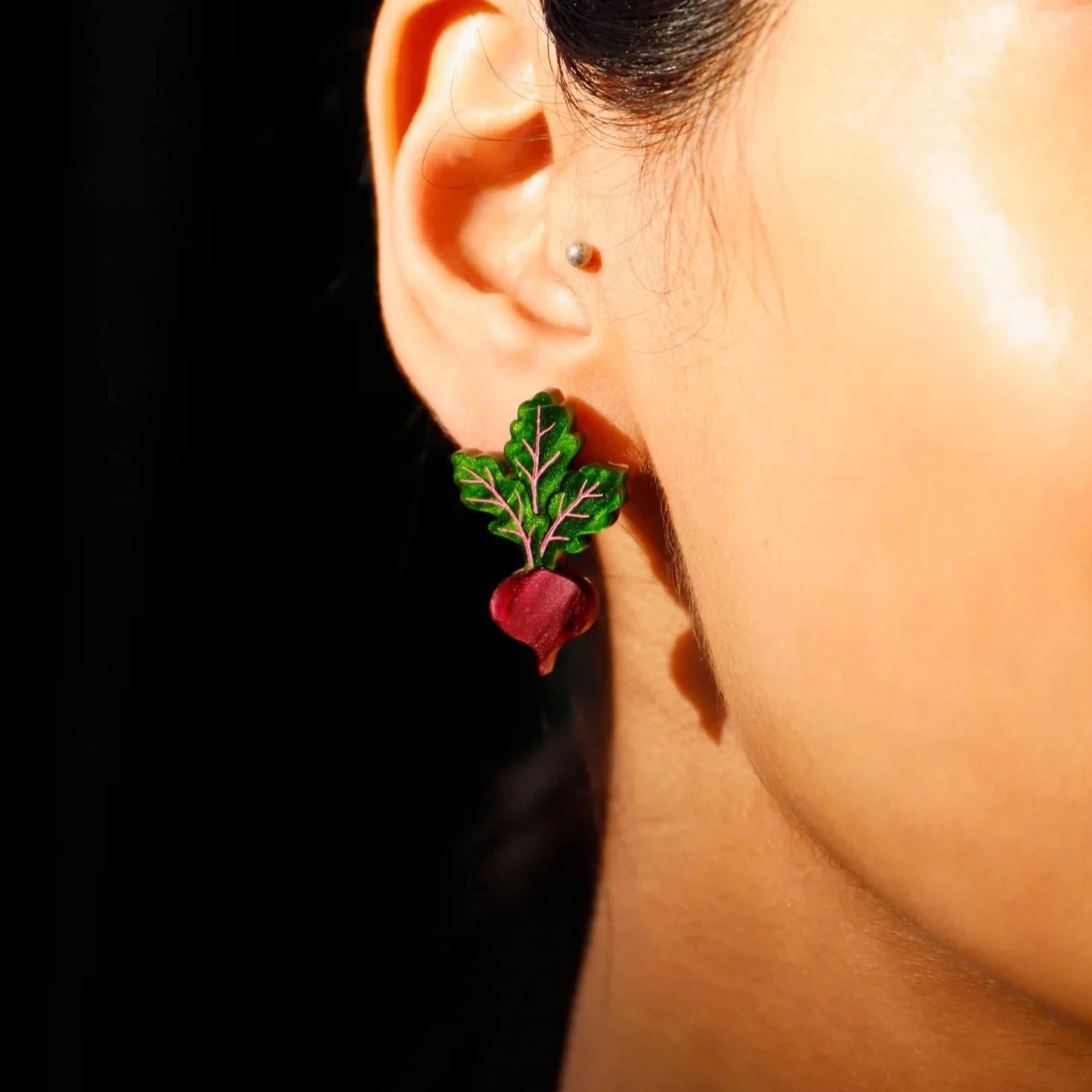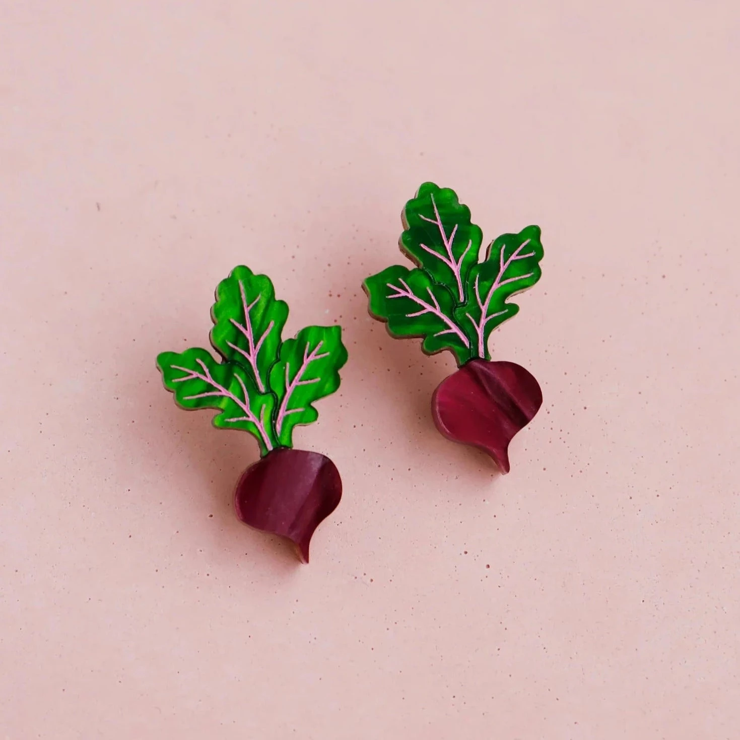 These leafy beetroot studs are sure to spark conversation! Made from luxury marbled acrylic. Playful, lightweight and the perfect day wear.