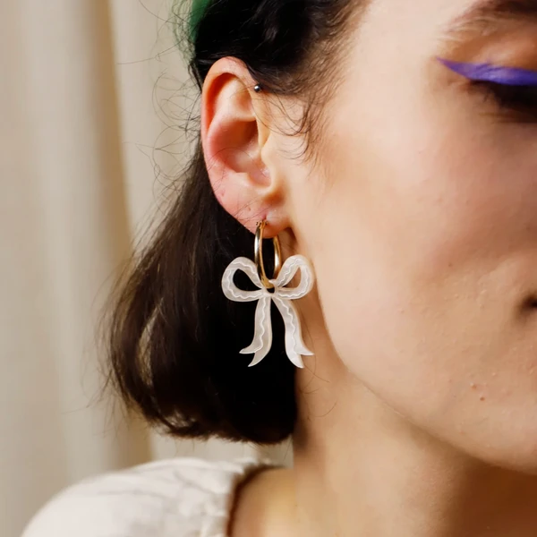 Romantic bow earrings made from velvety marbled acrylic with hand-inked details. Surprisingly lightweight so can be worn for extended periods of time.