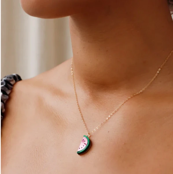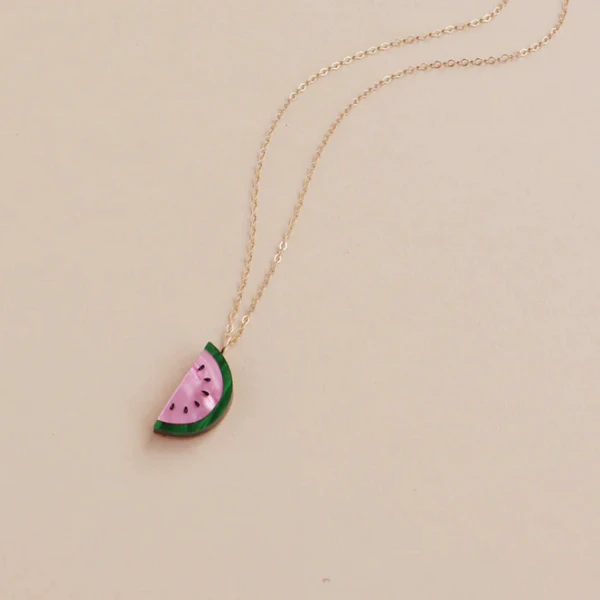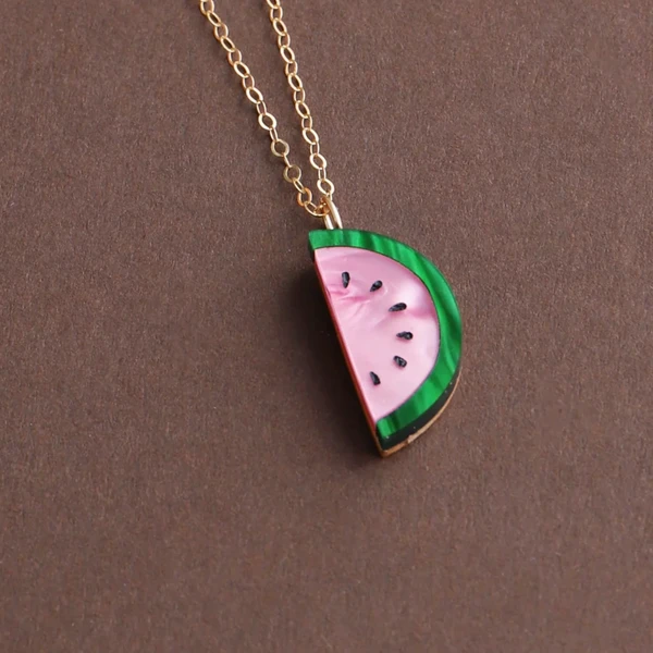 Statement necklace with acrylic and hand inked watermelon is cute, fun and brighten your day!