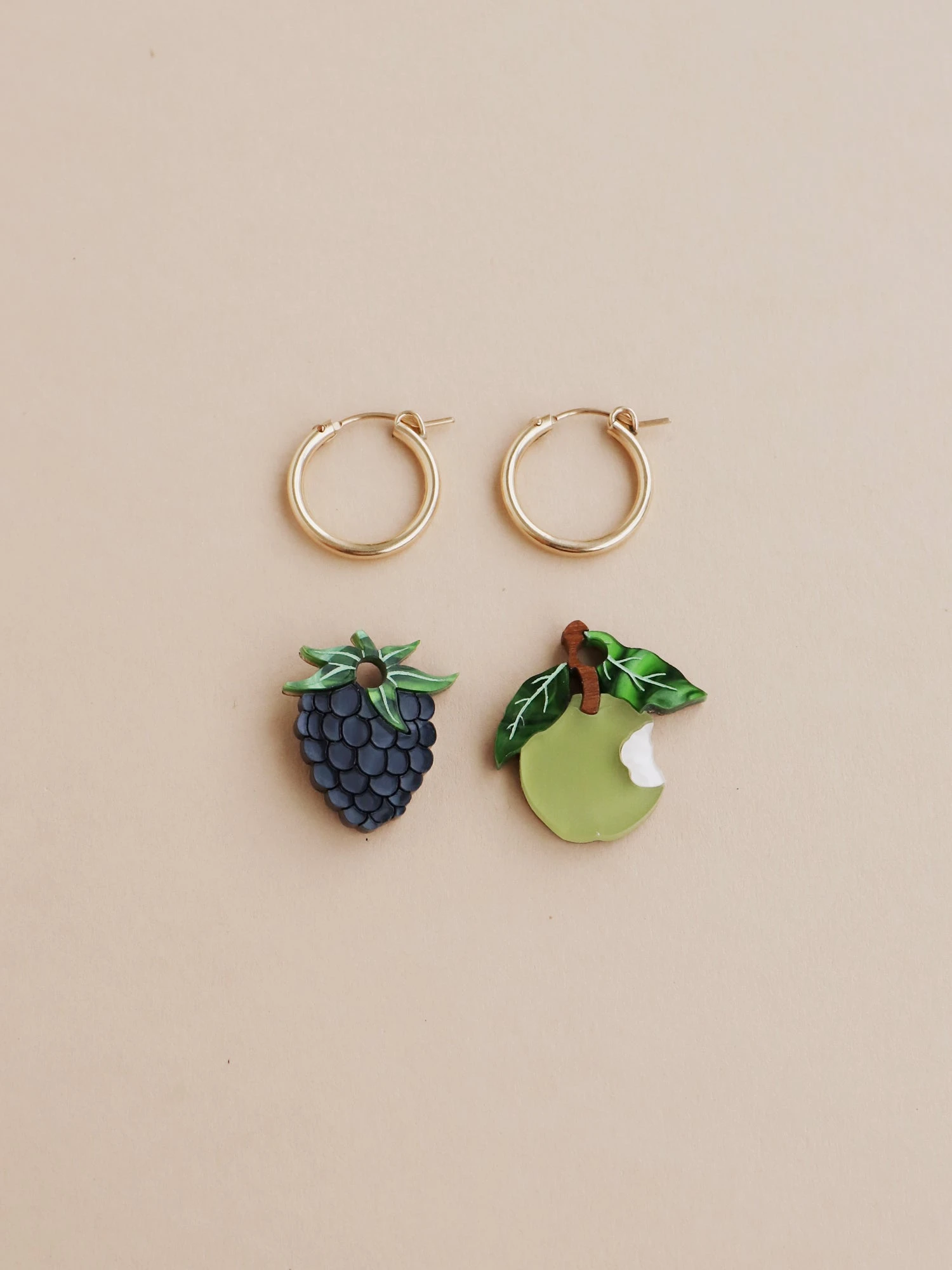 Purchase without hoops and add the charms onto a pair you already have, or you can purchase 1 x Pair of 19mm gold-filled hoops or 1 x Pair of 19mm sterling silver hoops from the dropdown menu.