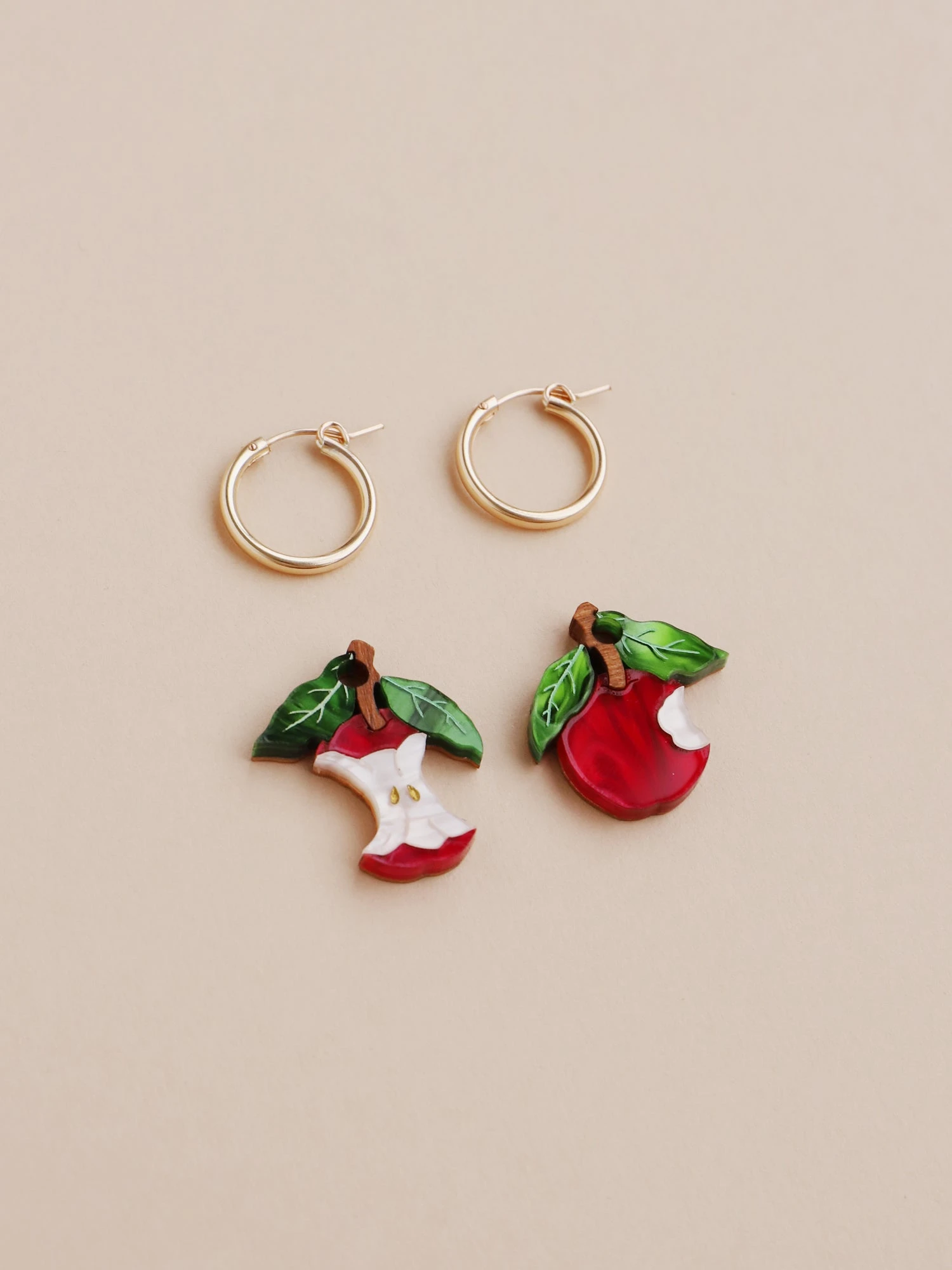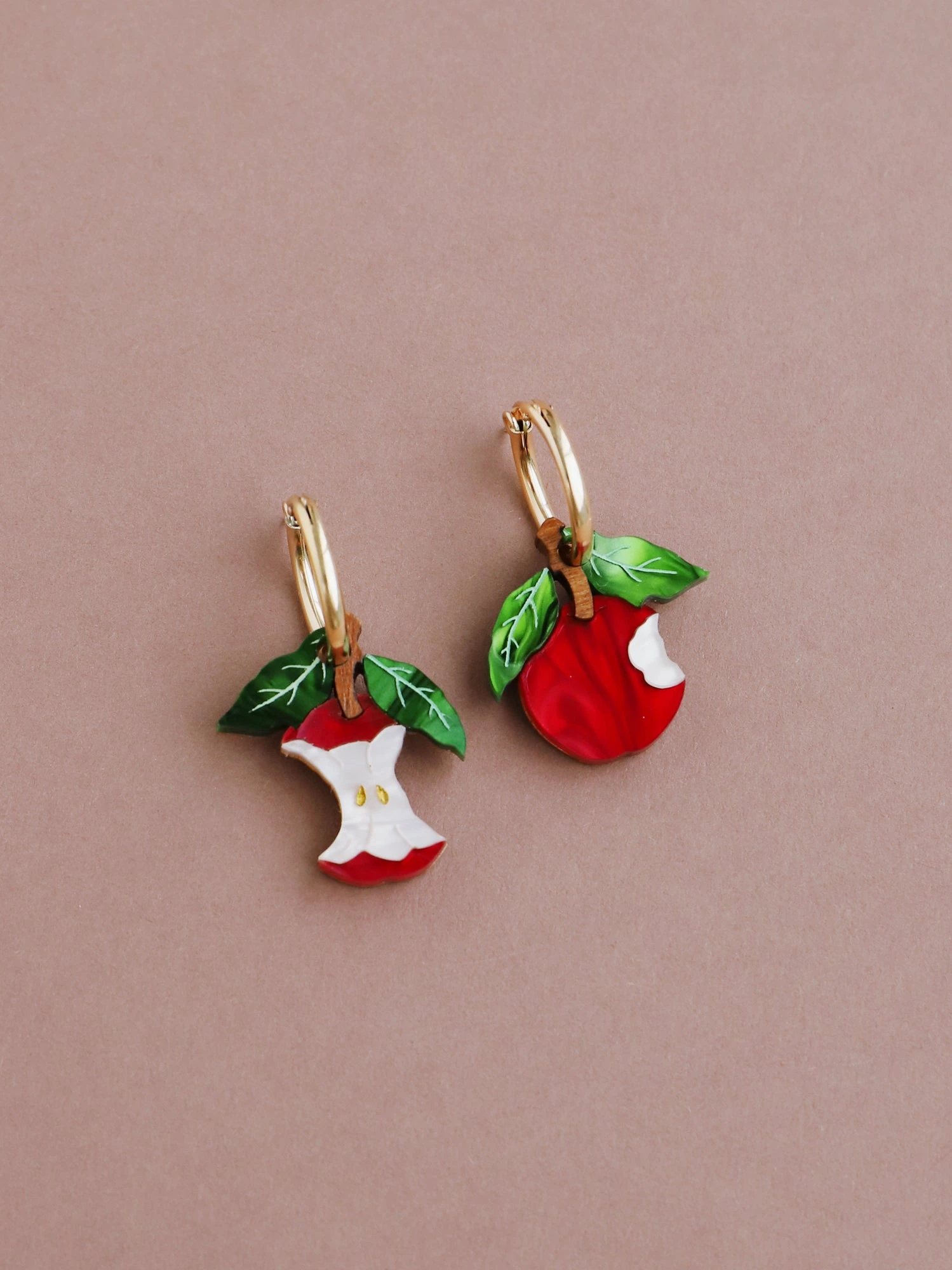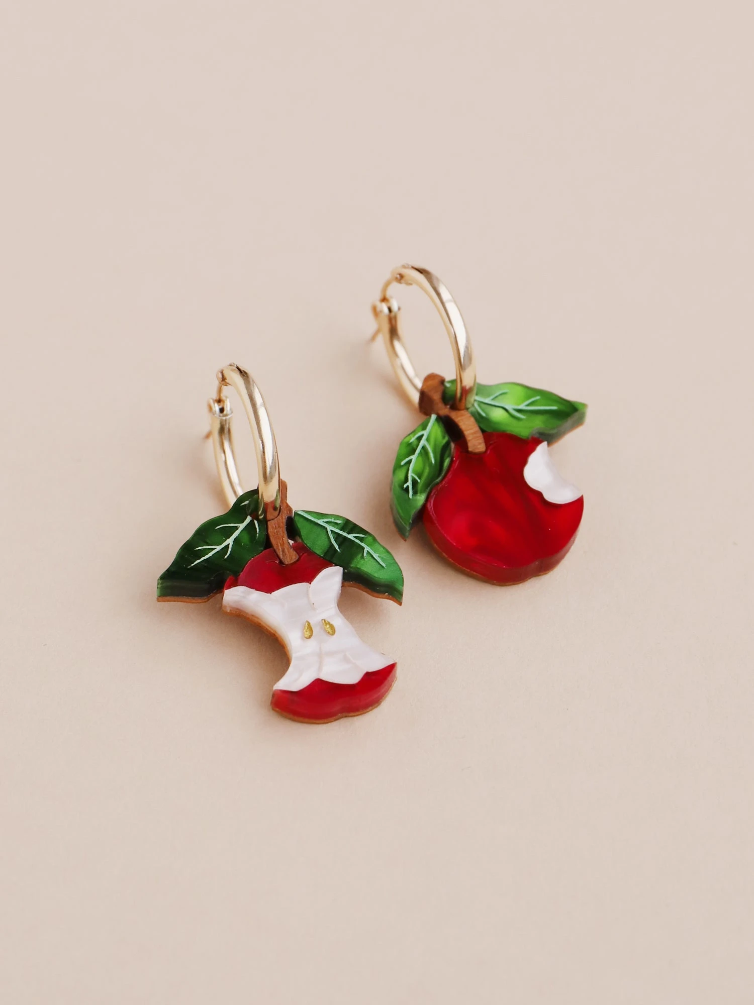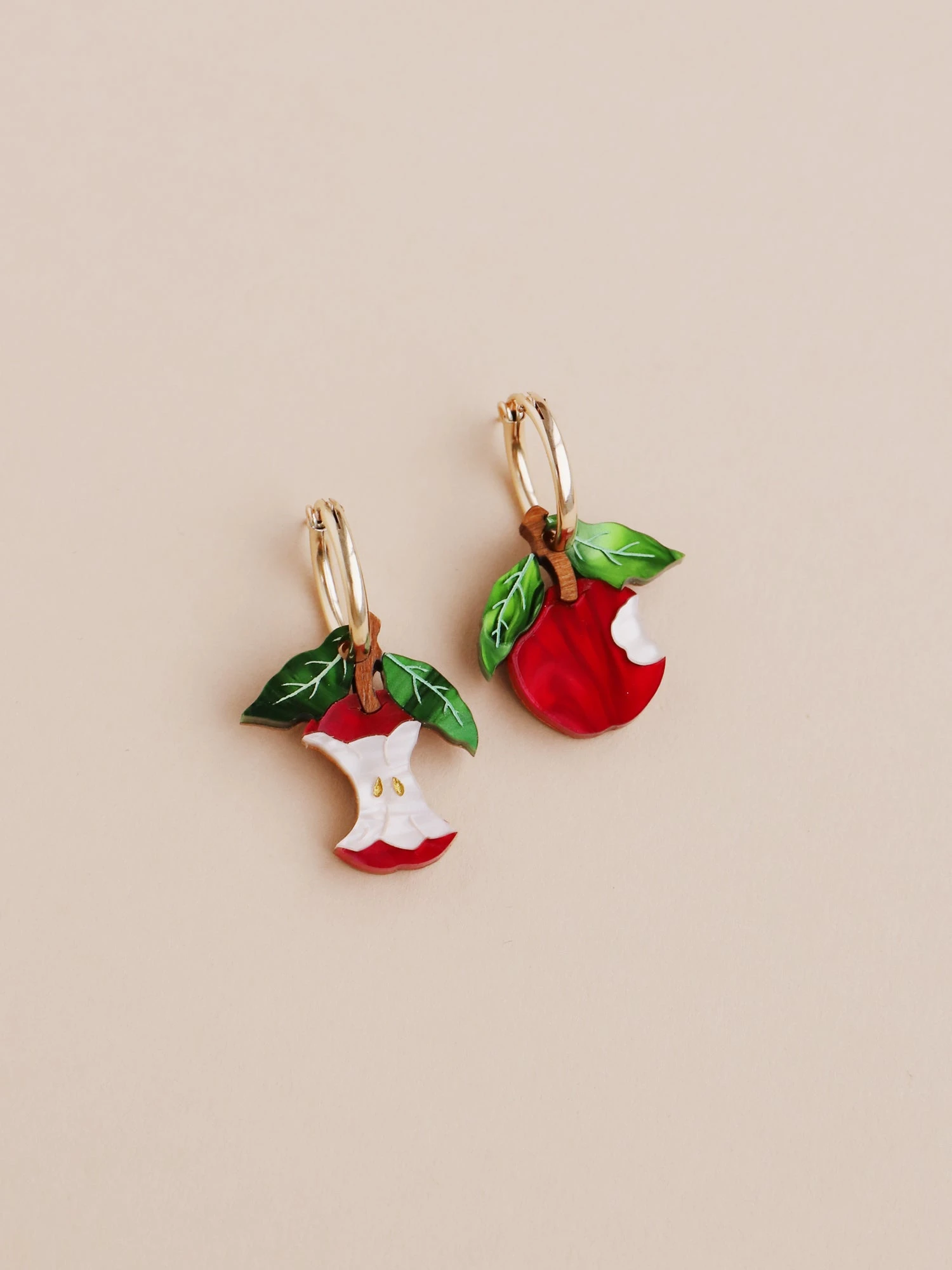 Straight from the orchard (and half-eaten!), our apple hoops are made from acrylic with hand-inked details, in our new red colour-way!Â