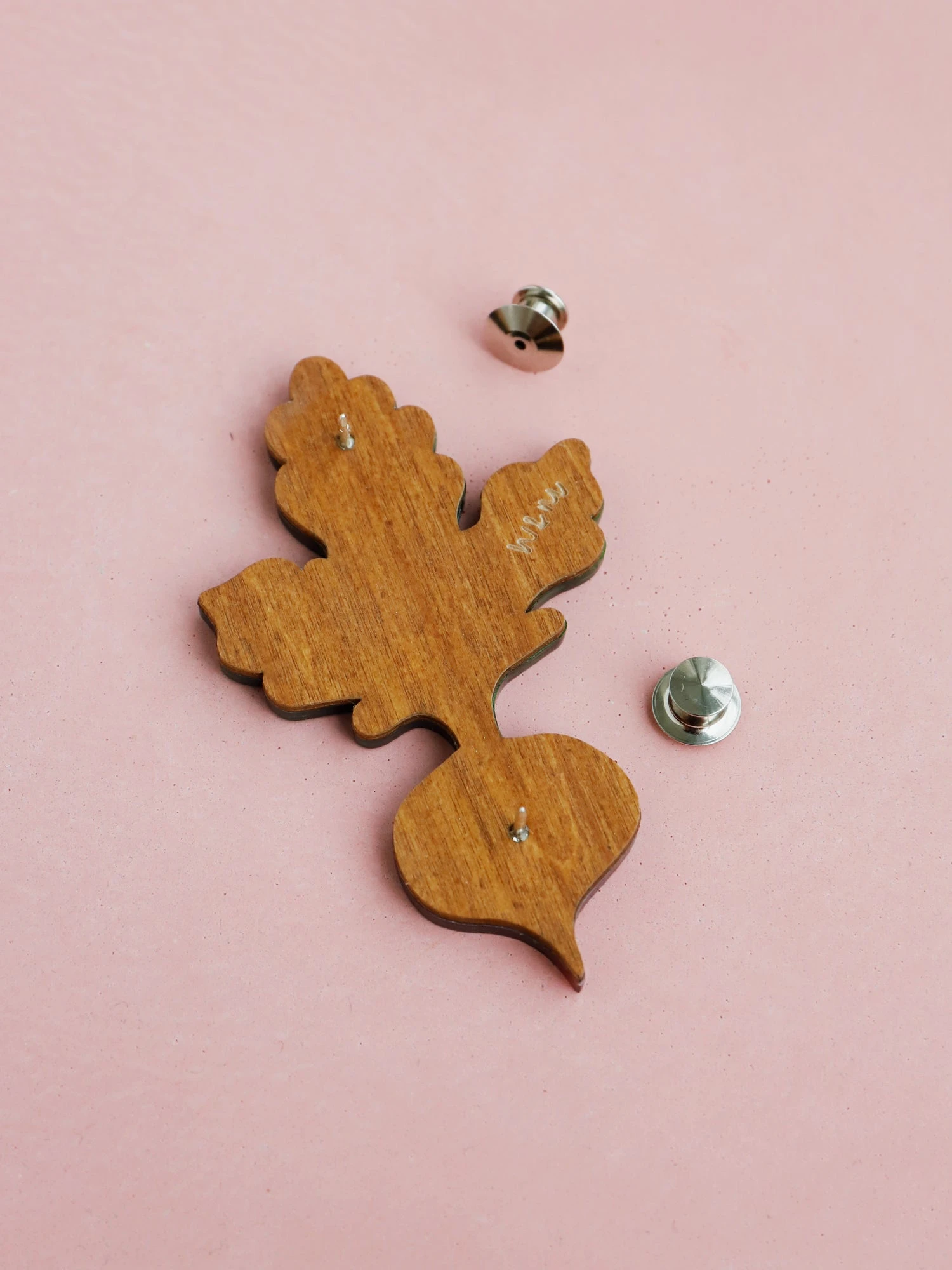 Make a statement with this leafy beetroot brooch made from luxury marbled acrylic. The perfect conversation starter.