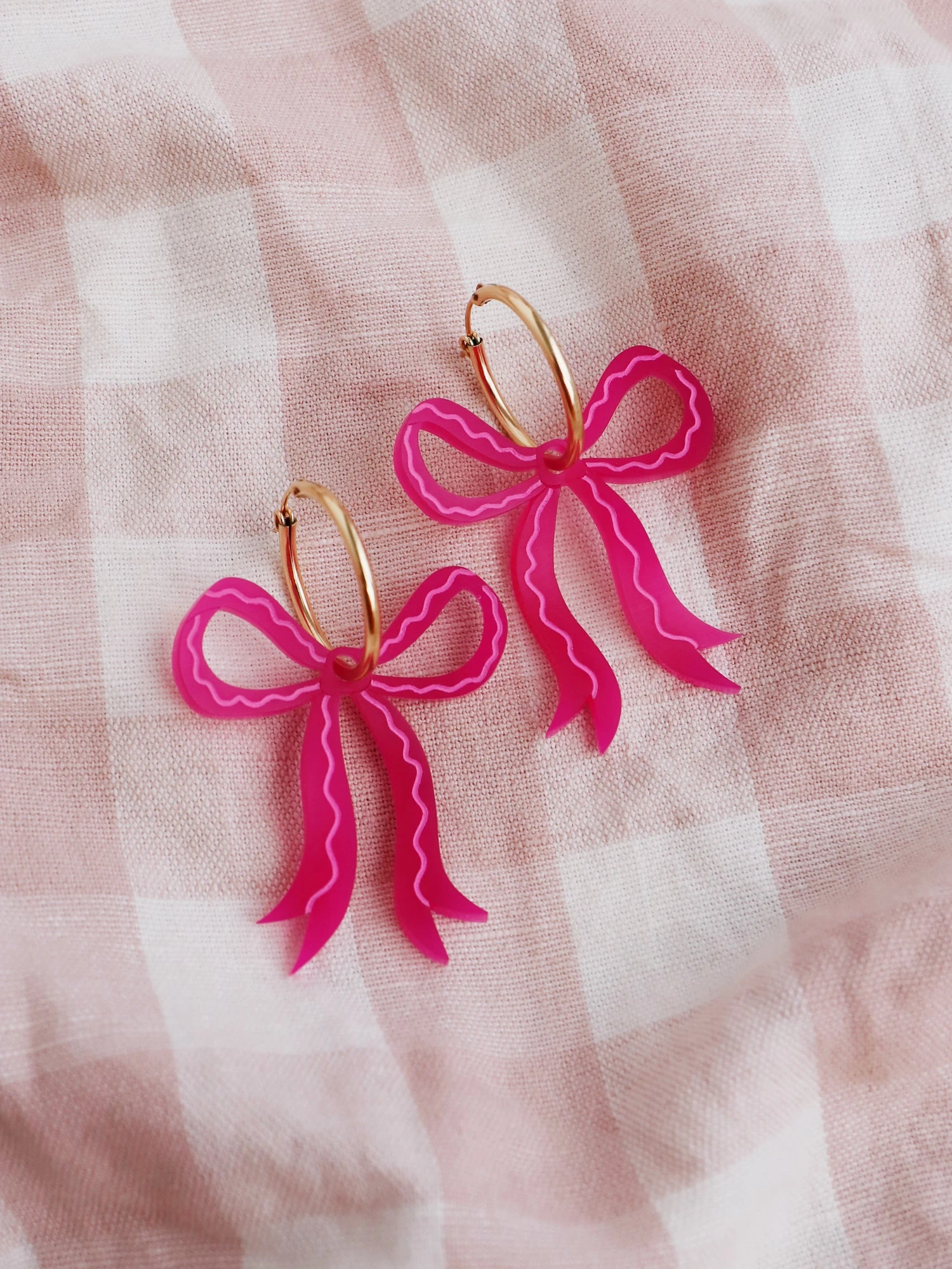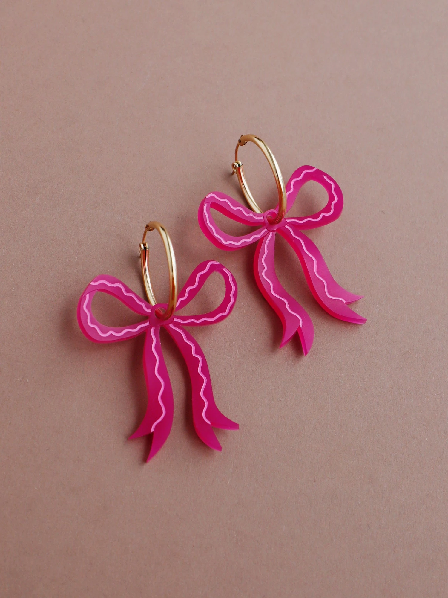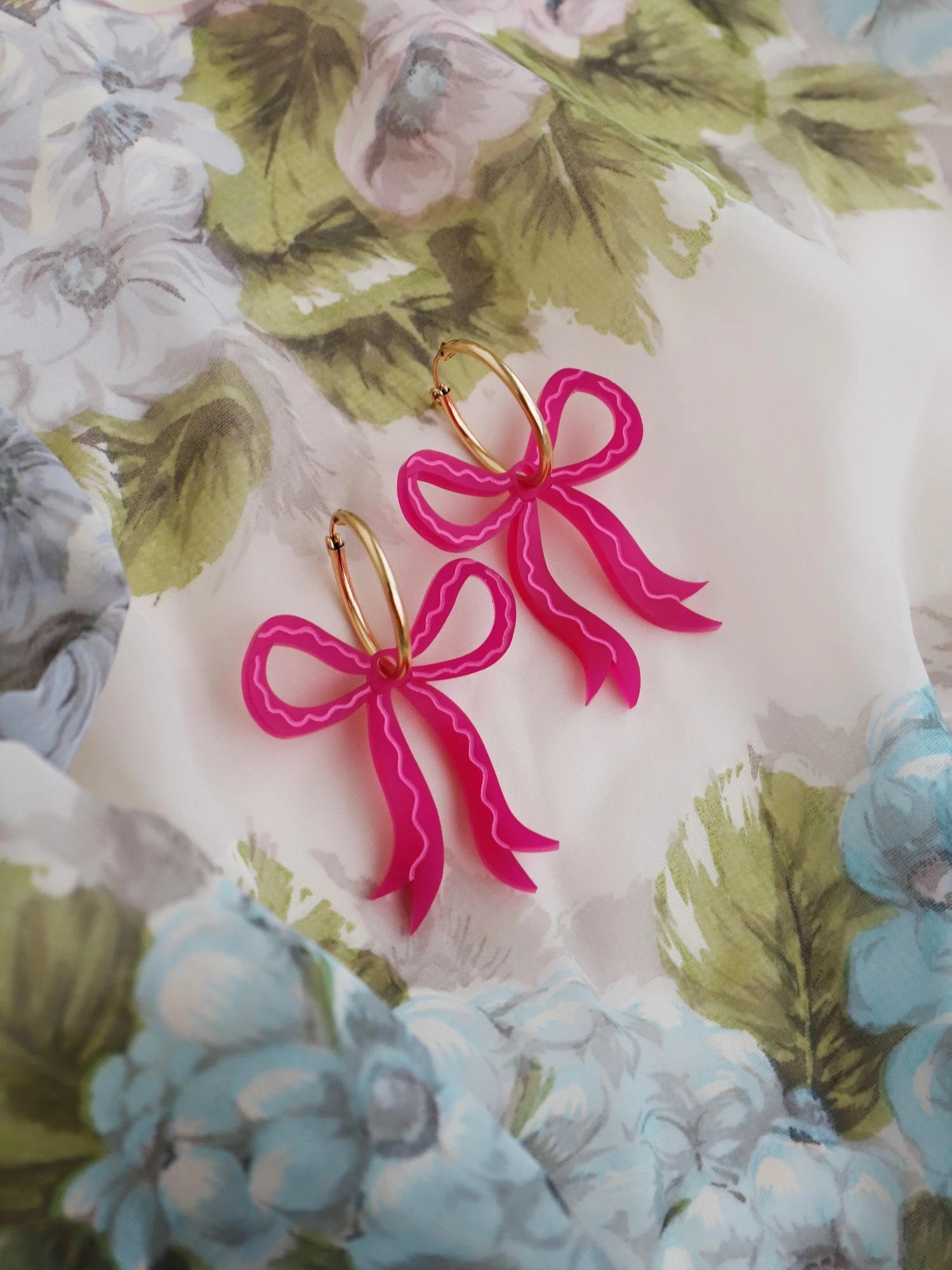 Romantic bow earrings made from velvety marbled acrylic with hand-inked details. Surprisingly lightweight so can be worn for extended periods of time.