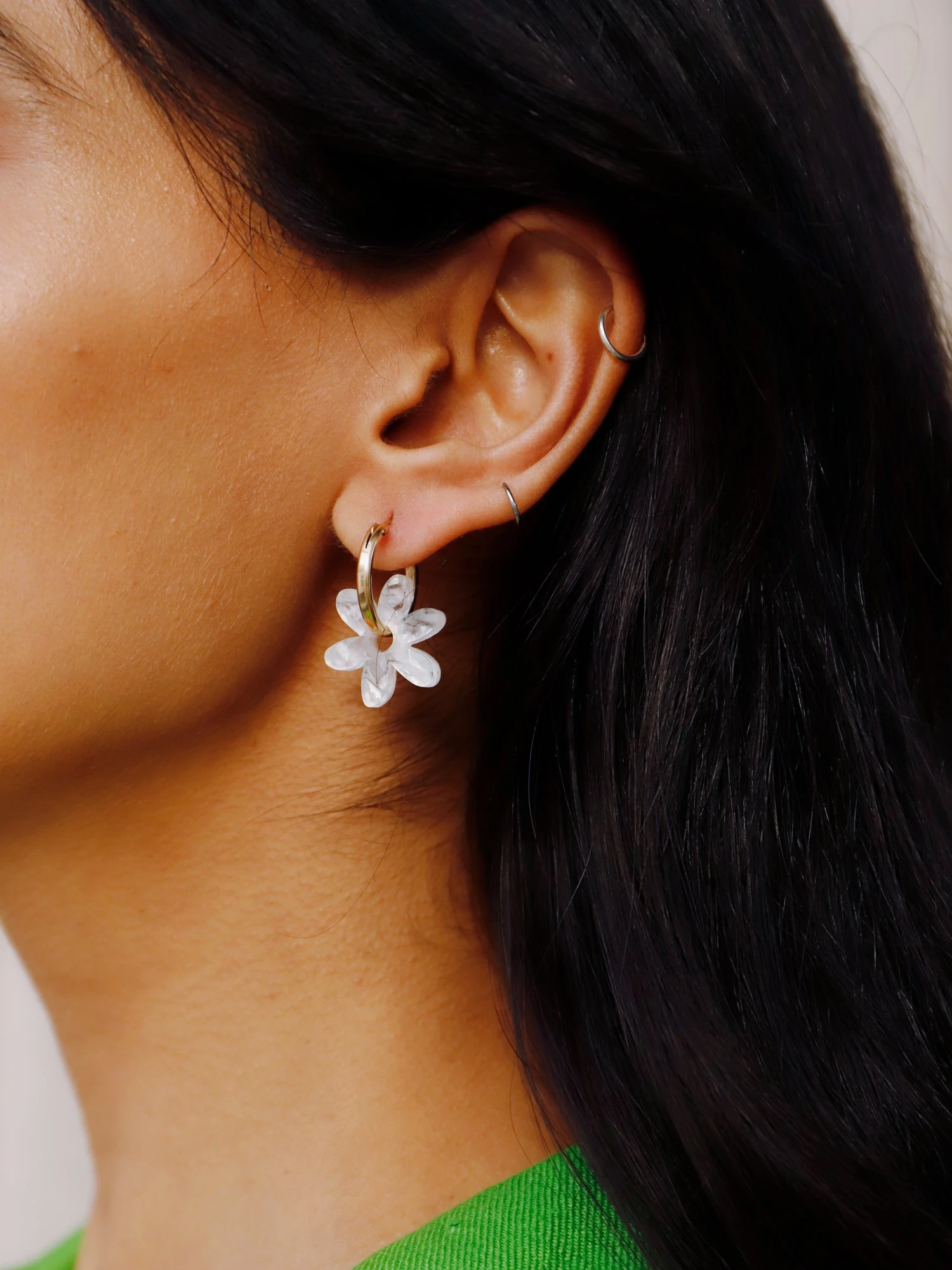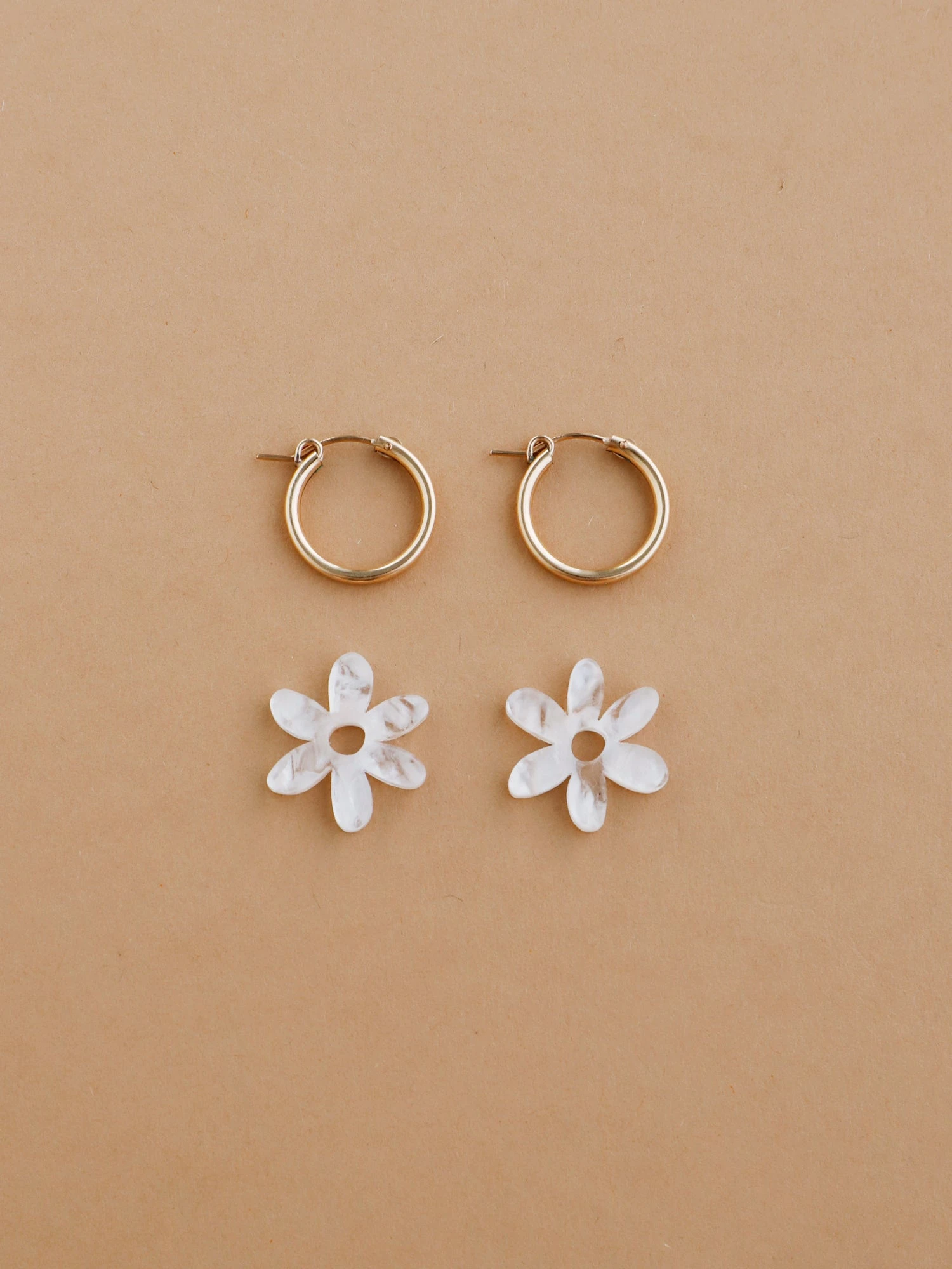 - Optional 14k gold-filled hoops – can be worn separately