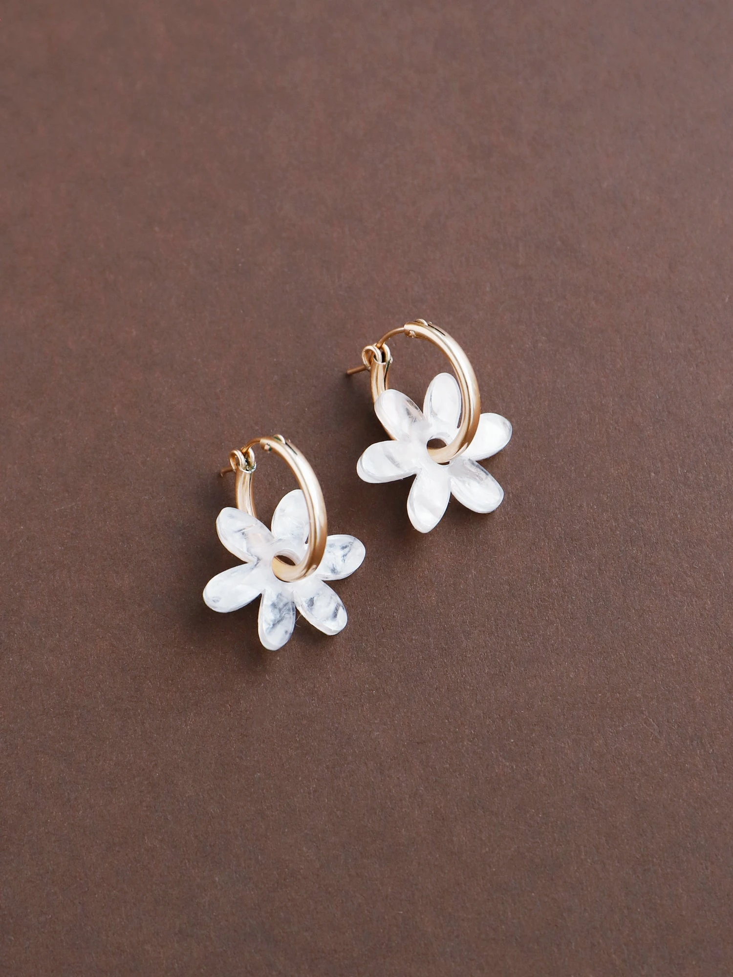 Small abstract flower charms made from 100% recycled acrylic.