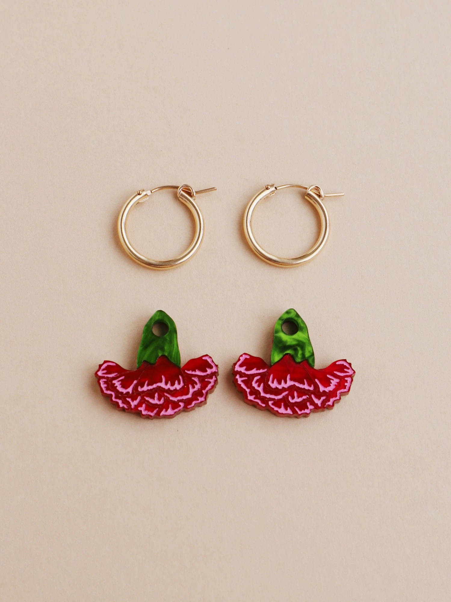 • Optional 14k Gold-Filled hoops – can be worn separately