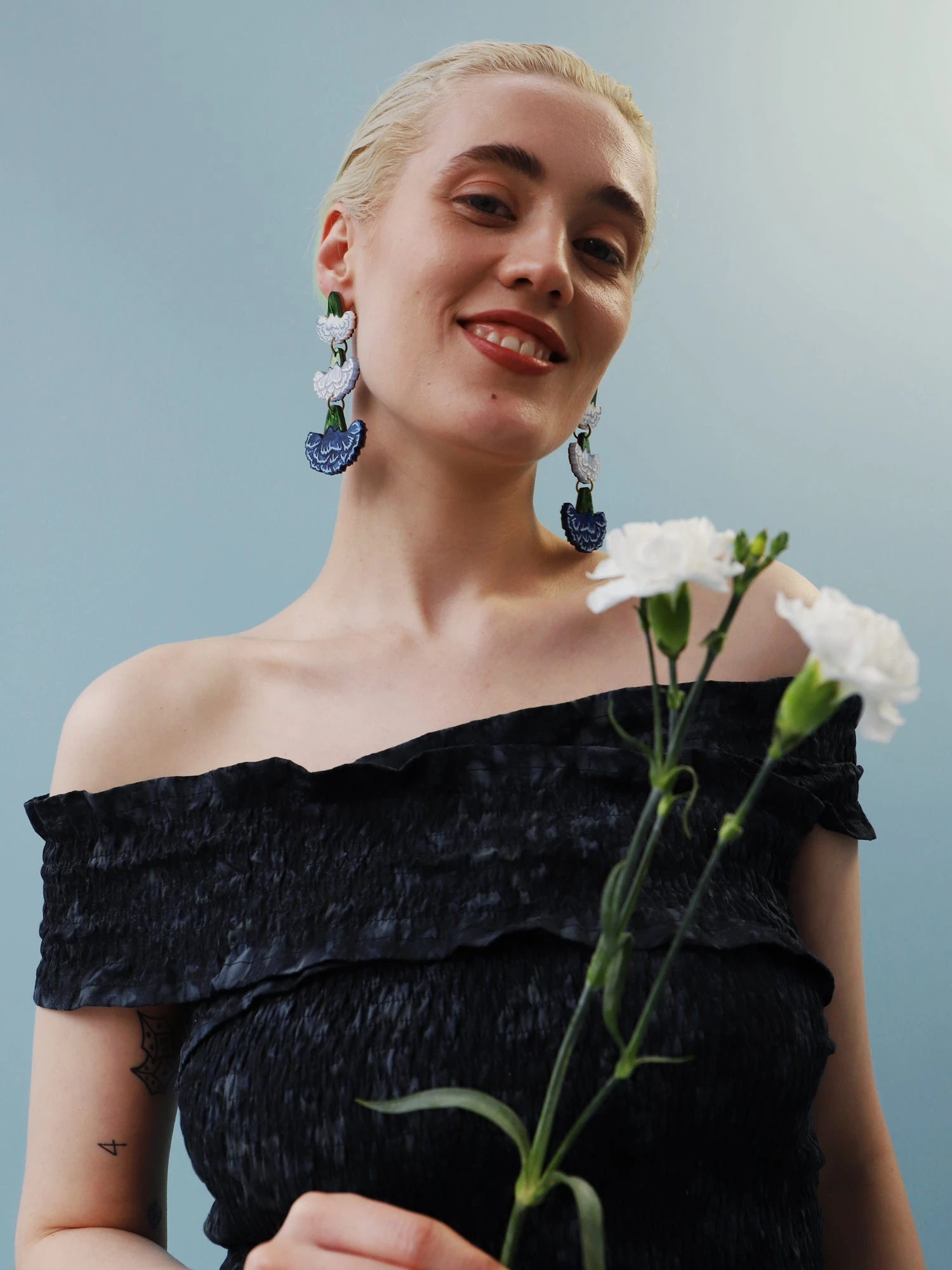 Step into a world of whimsy with our Carnation Statement Earrings. These playful blooms are super lightweight for their size and are made from acrylic with hand-inked engravings.Â