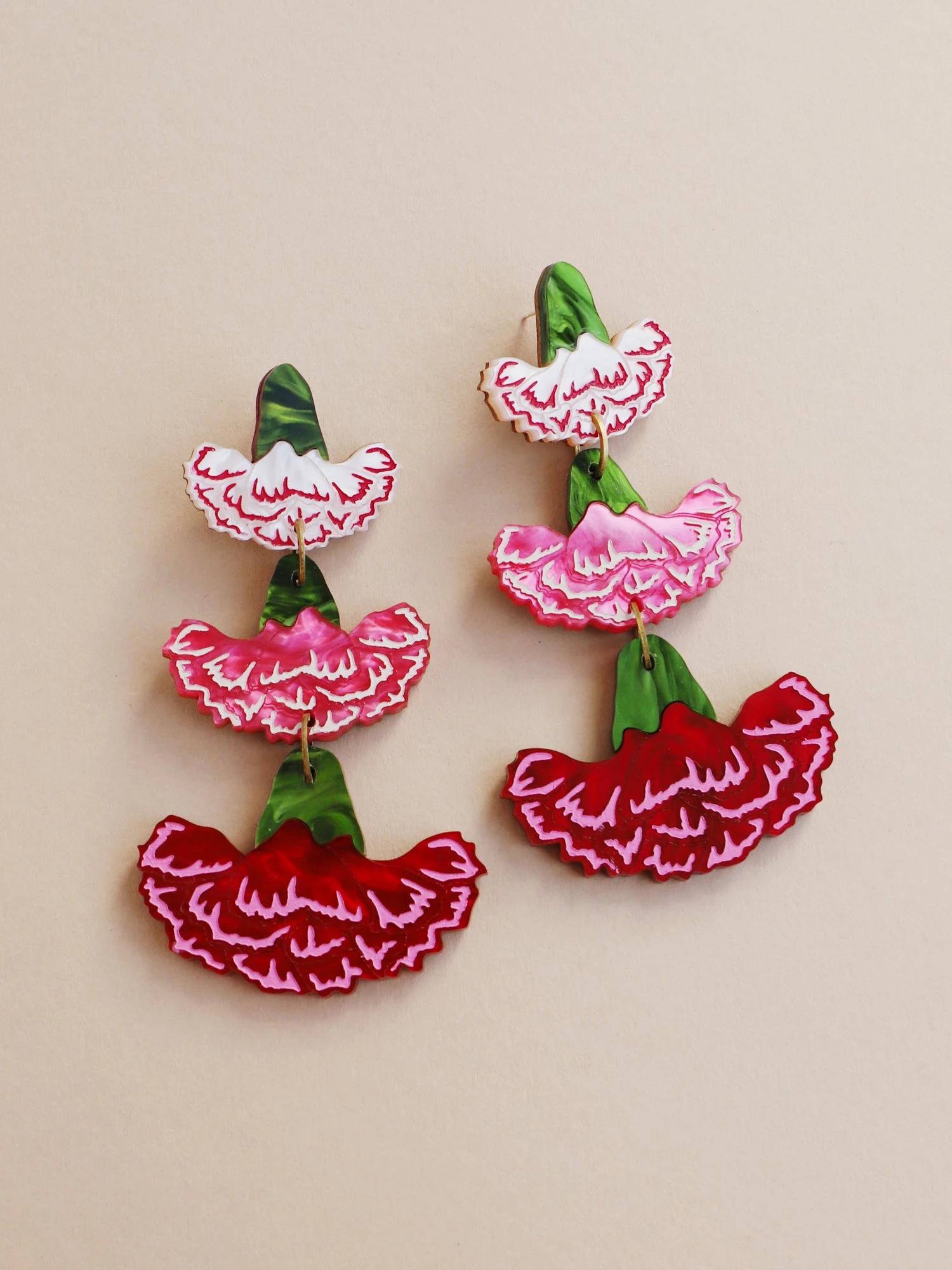 Step into a world of whimsy with our Carnation Statement Earrings. These playful blooms are super lightweight for their size and are made from acrylic with hand-inked engravings.