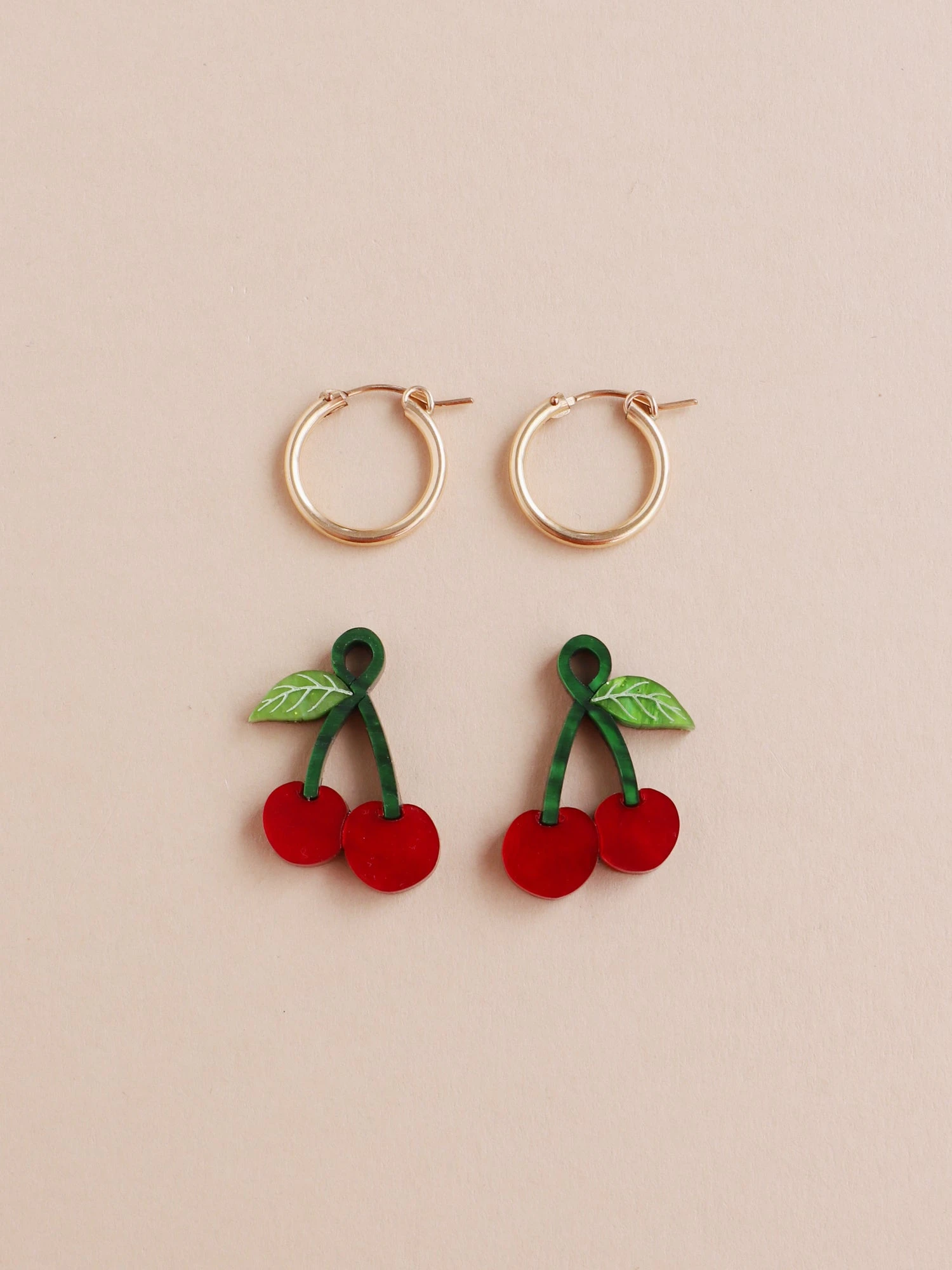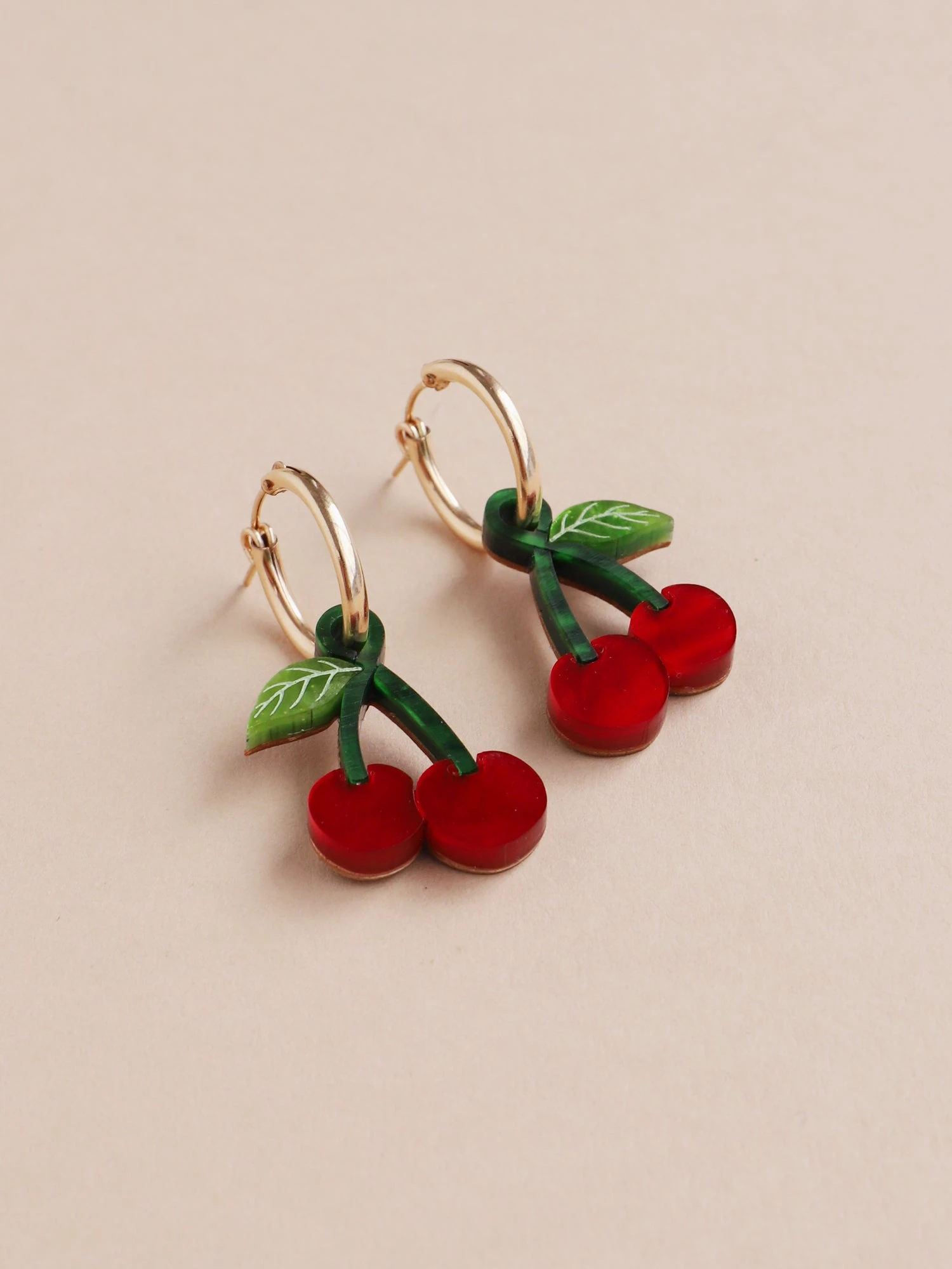 These fruity hoops will be the cherry on top of your outfit! Made from acrylic with hand-inked details.