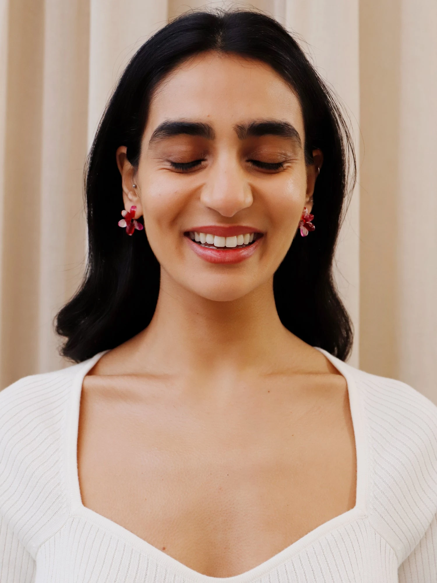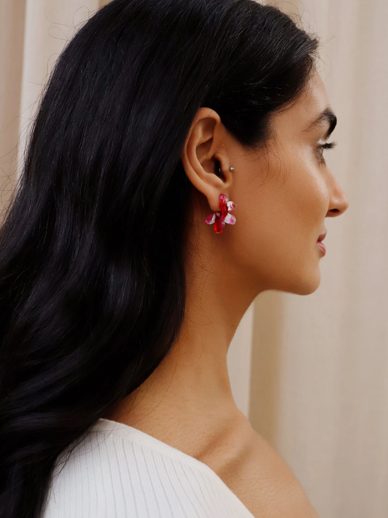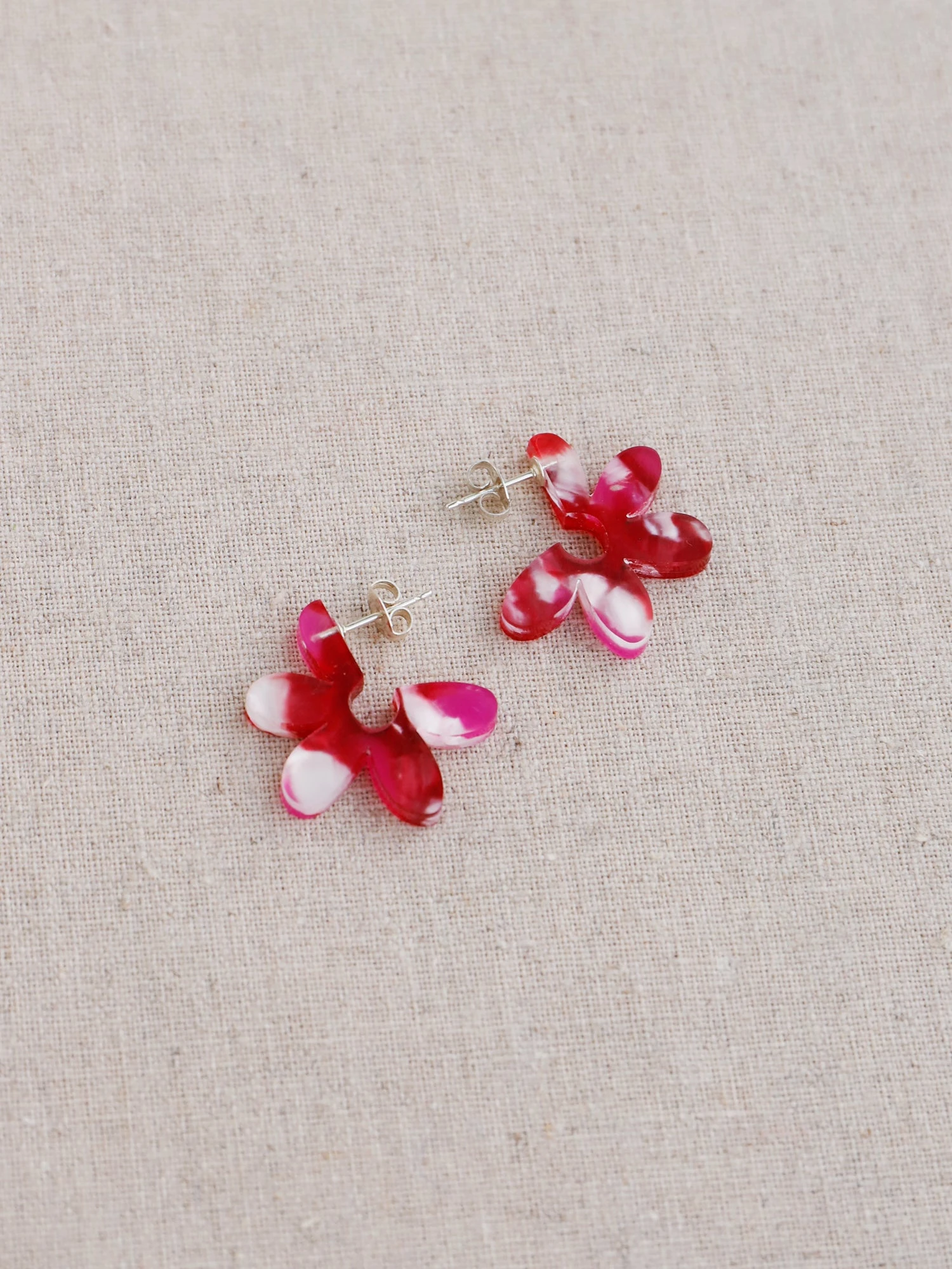 Playful hoop earrings made with 100% recycled acrylic and sterling silver earring posts & butterflies. We love these stacked alongside other earrings!Â