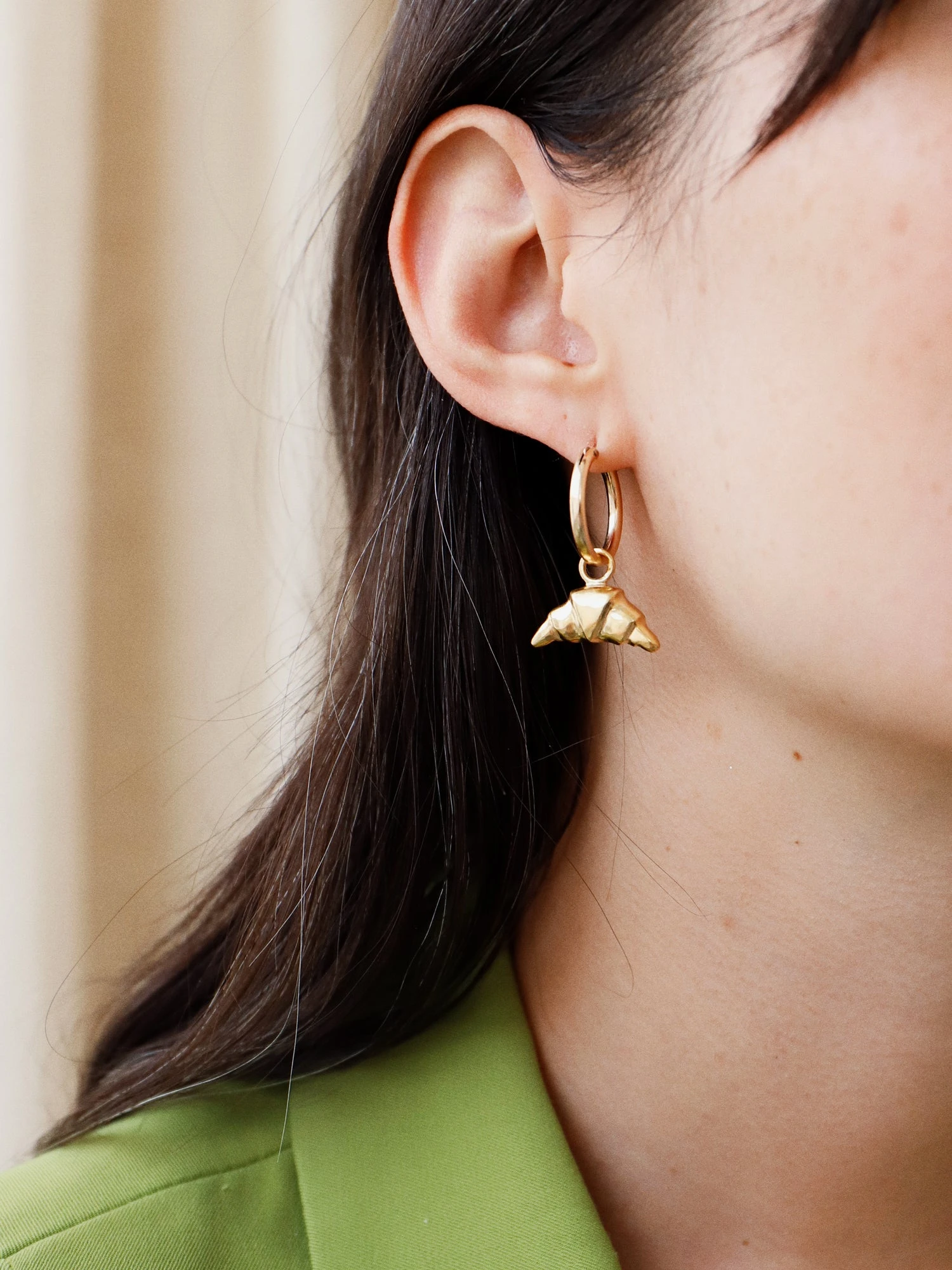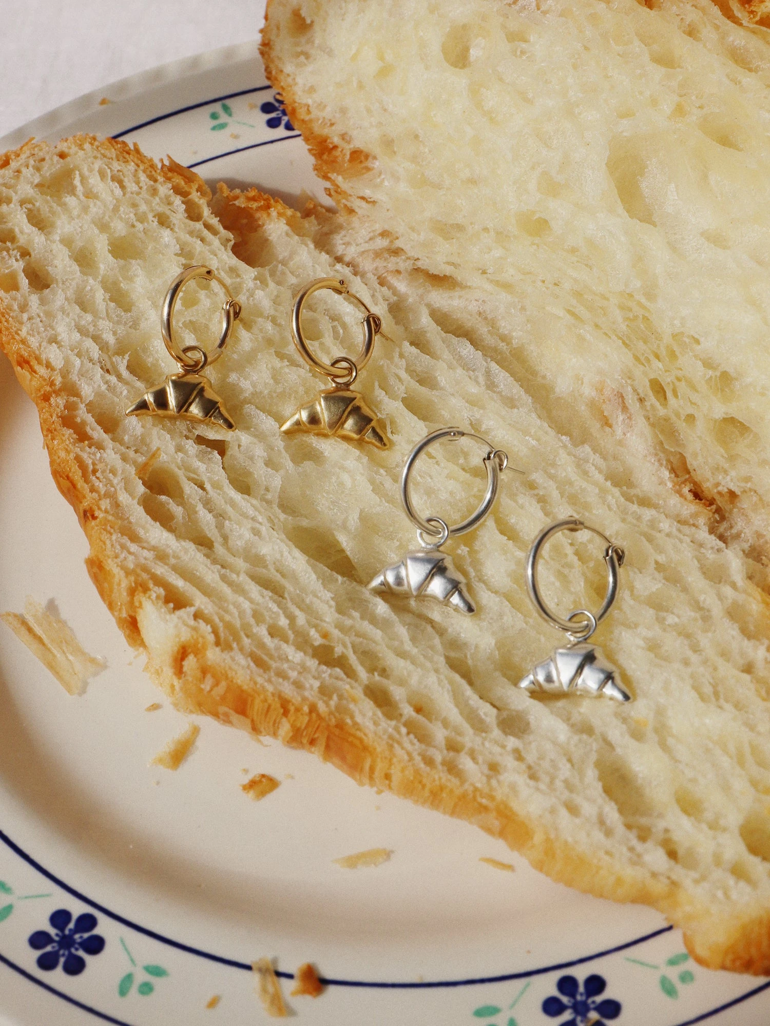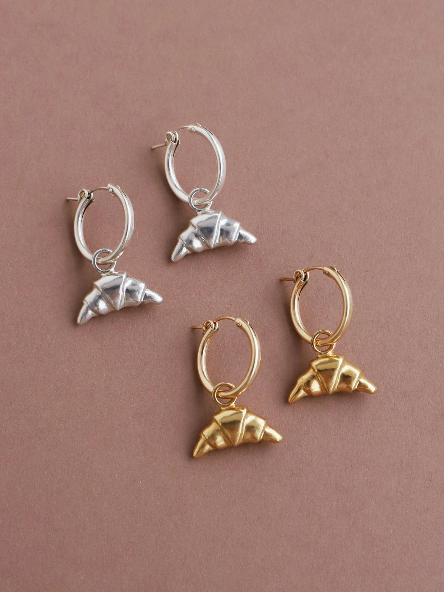 Hannah designed and hand-carved the croissant charm initially in wax. Each piece is then cast from a mould into recycled sterling silver using the the ancient technique of lost wax casting.