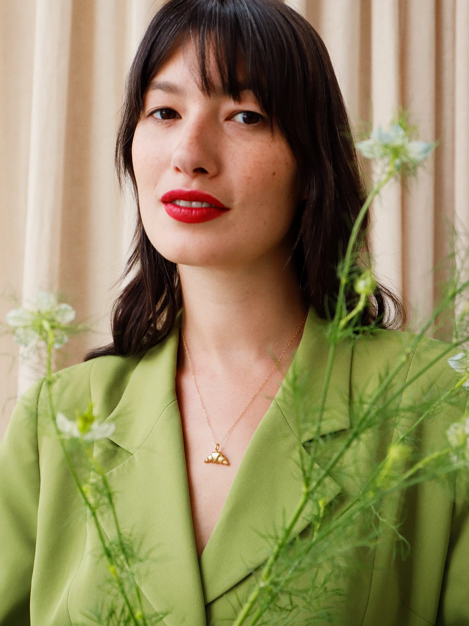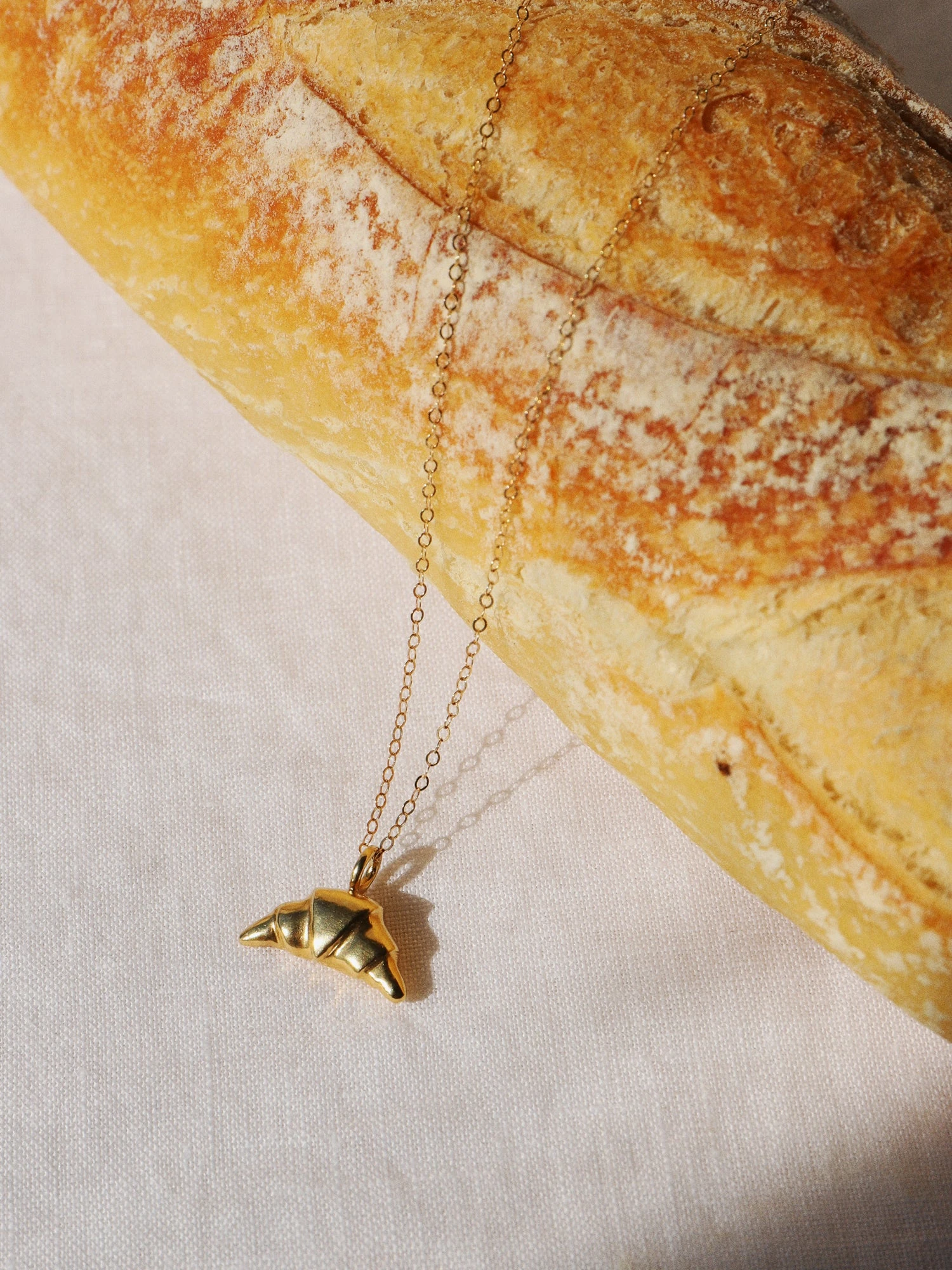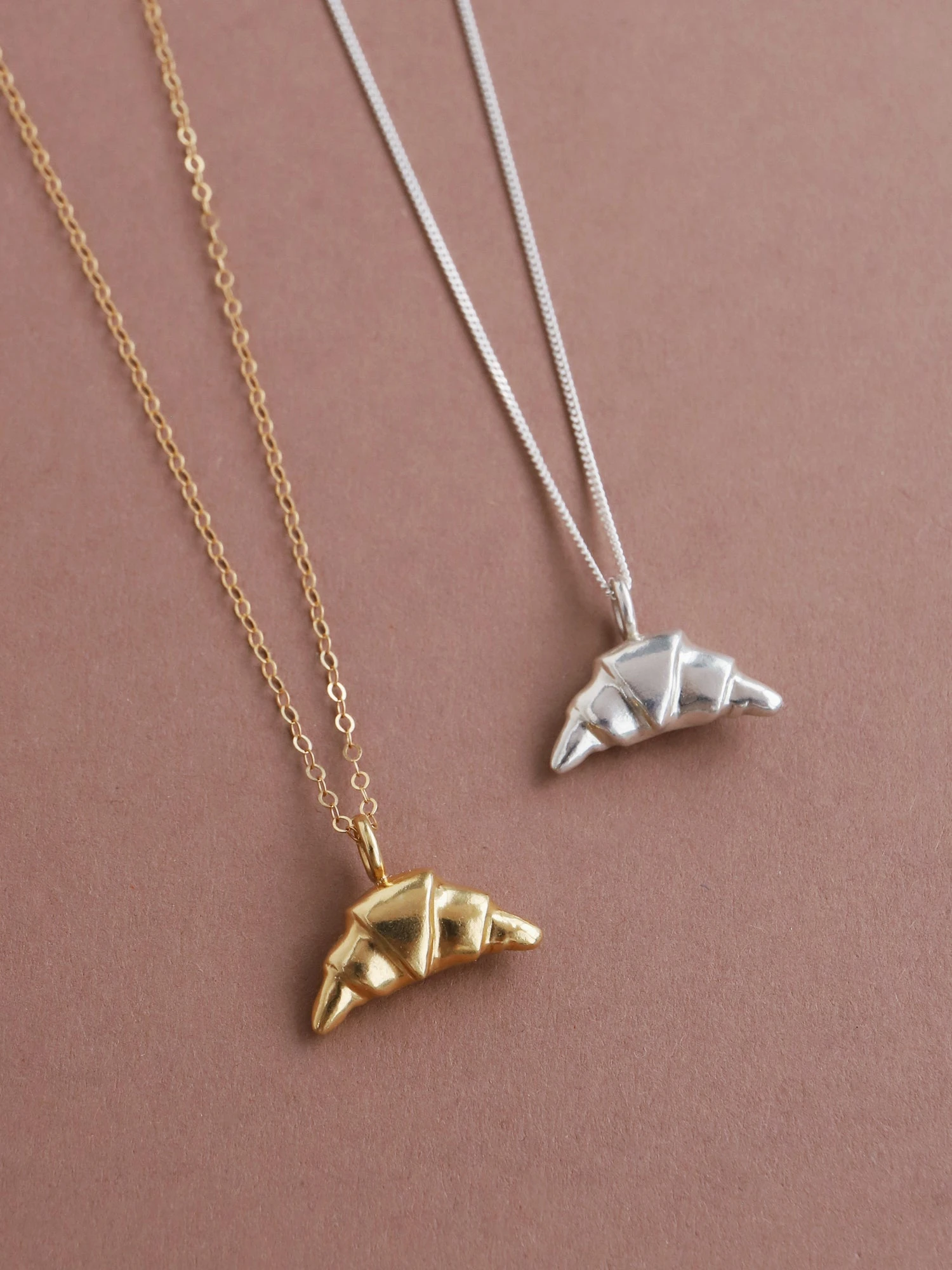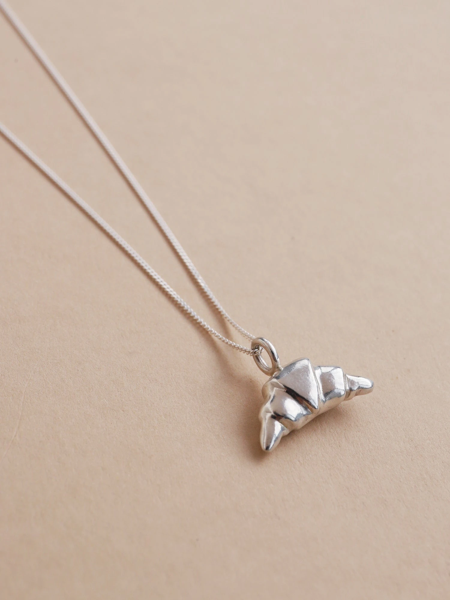 Hannah designed and hand-carved the croissant pendant initially in wax. Each piece is then cast from a mould into recycled sterling silver using the the ancient technique of lost wax casting.