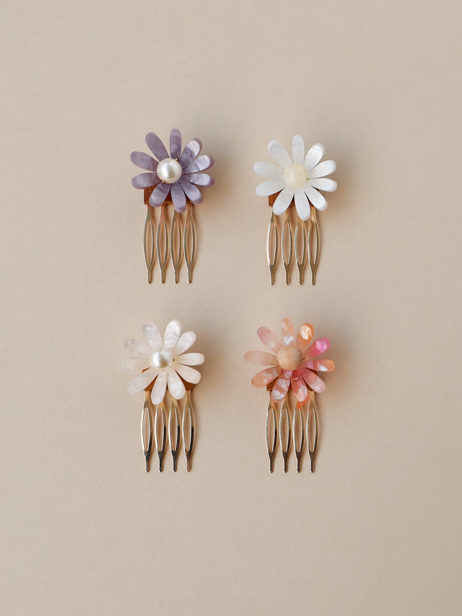 Inspired by a floral meadow, these combs add a fun floral twist to your everyday ‘do! Available in four colours.Â