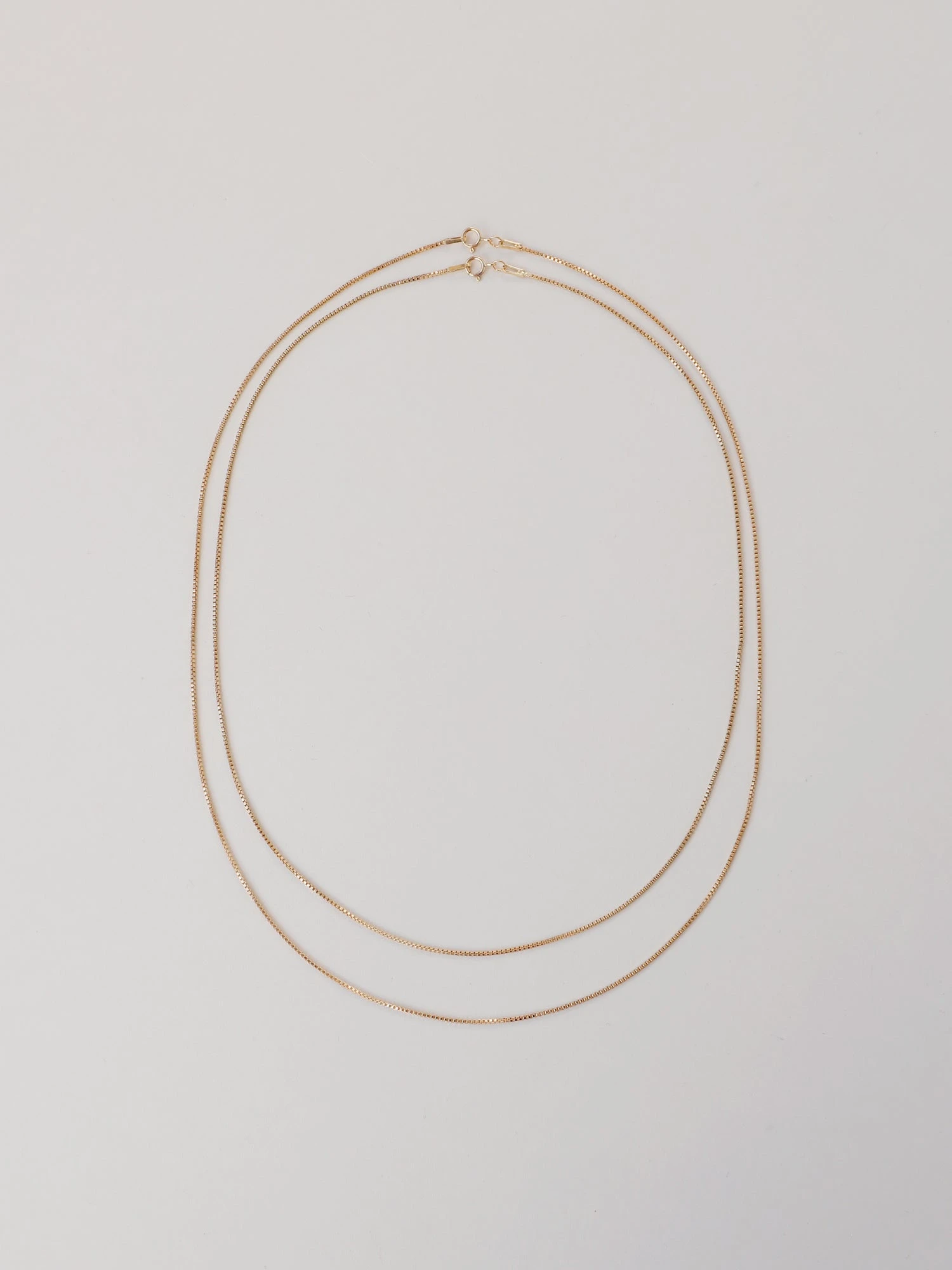 A high quality 14k gold-filled necklace chain with clasp opening, available in two sizes.