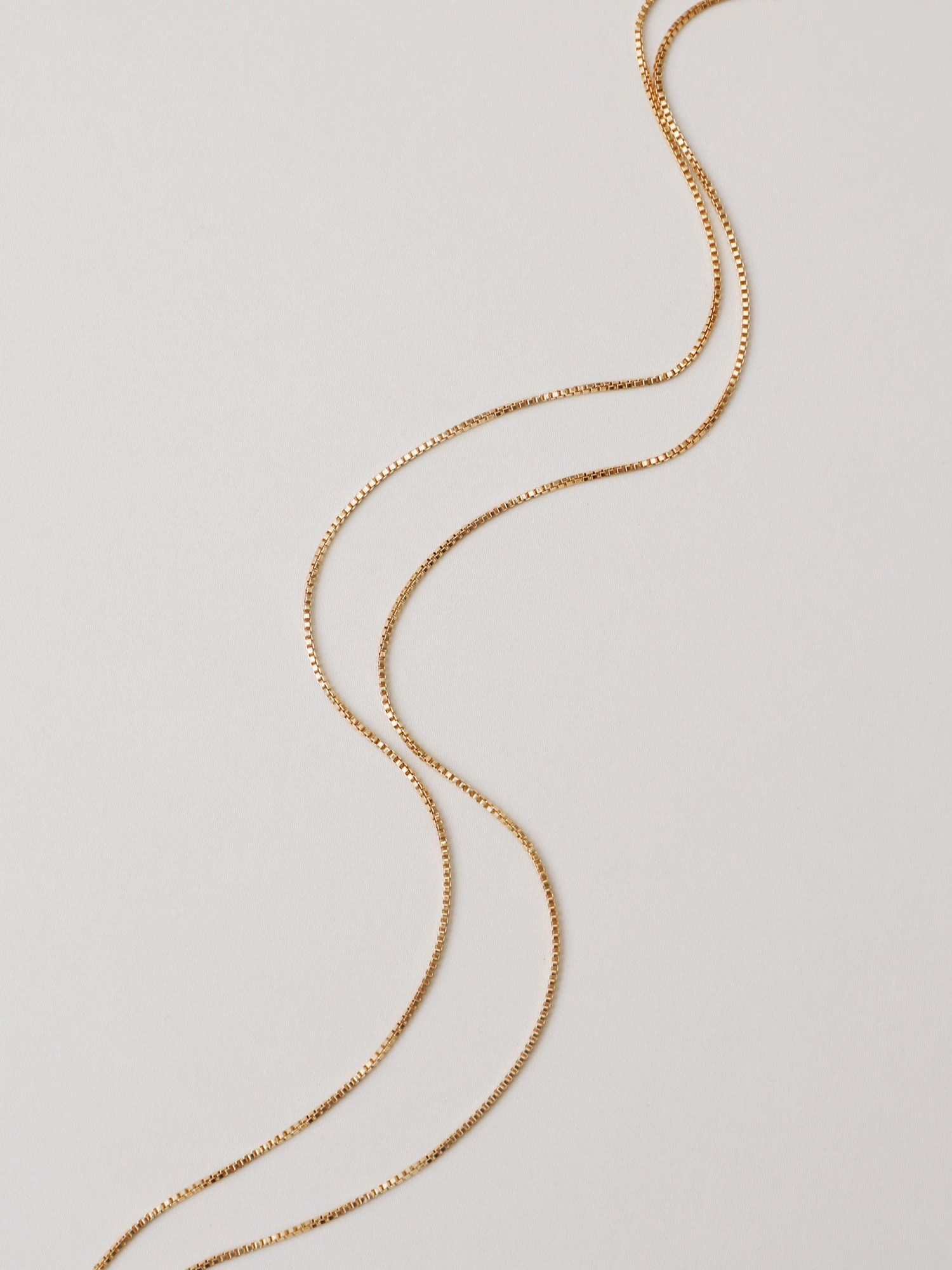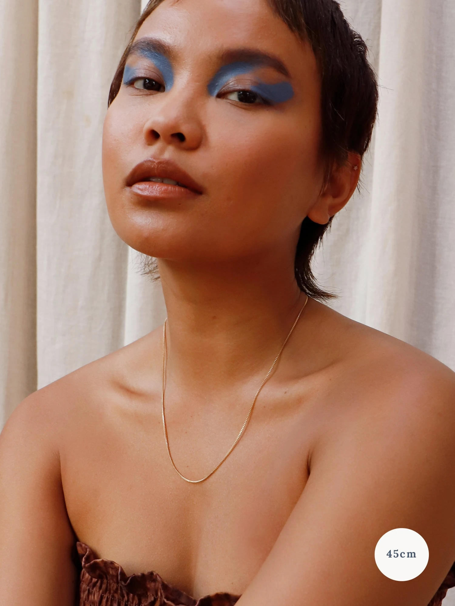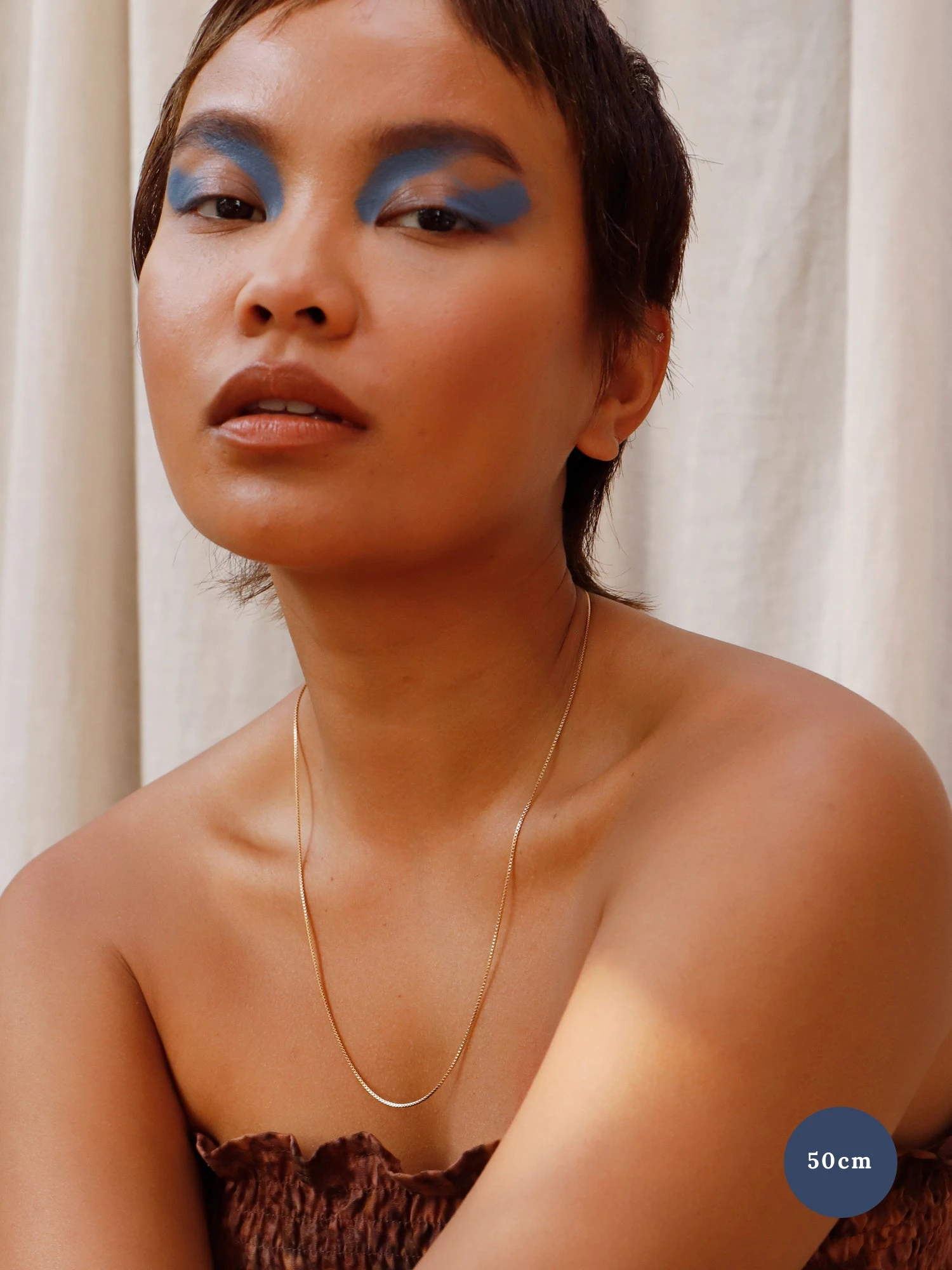 This box chain style has a lovely fluid, slinky feeling to it and looks great worn on its own, layered up or with any of our pendants.