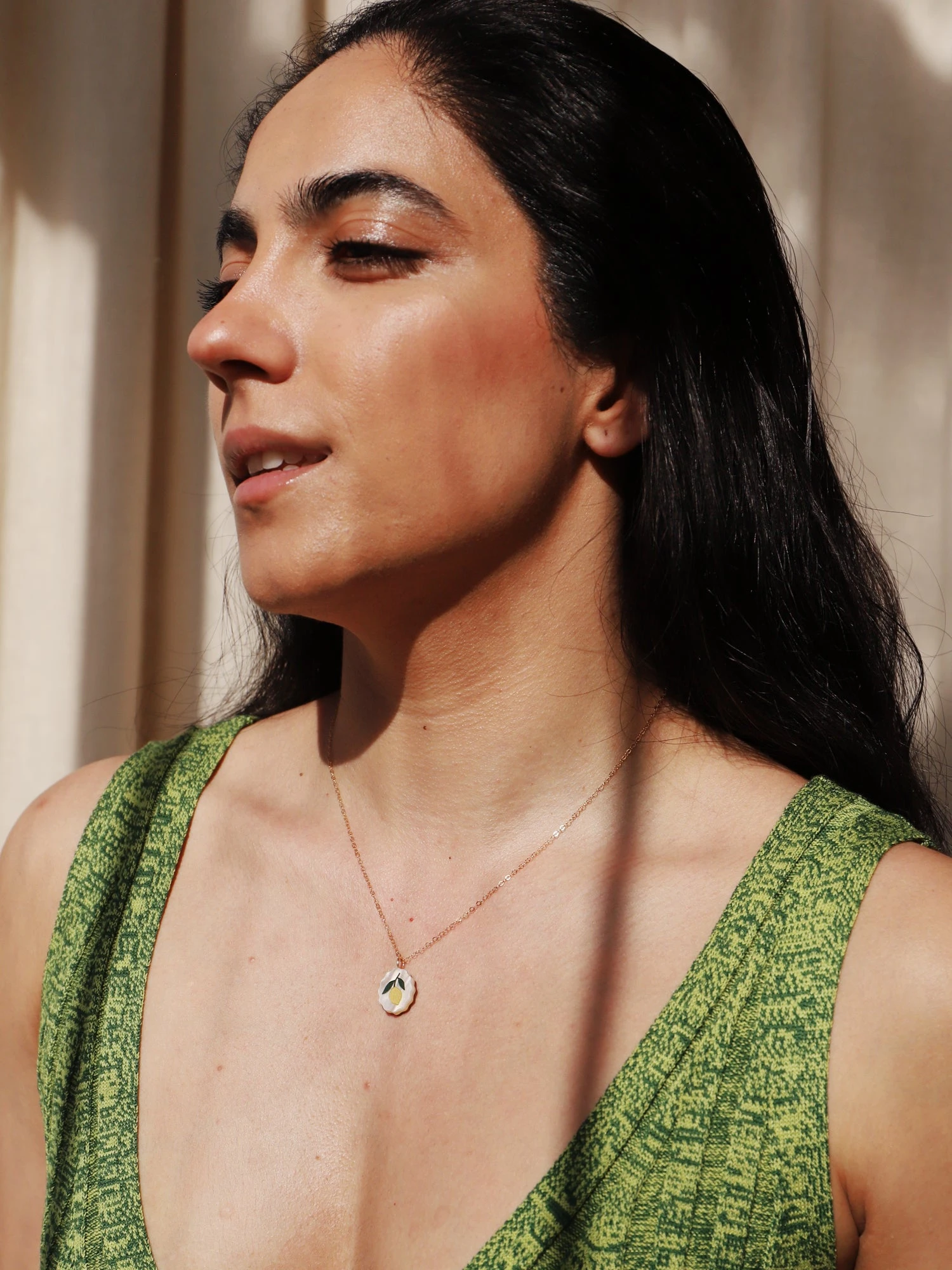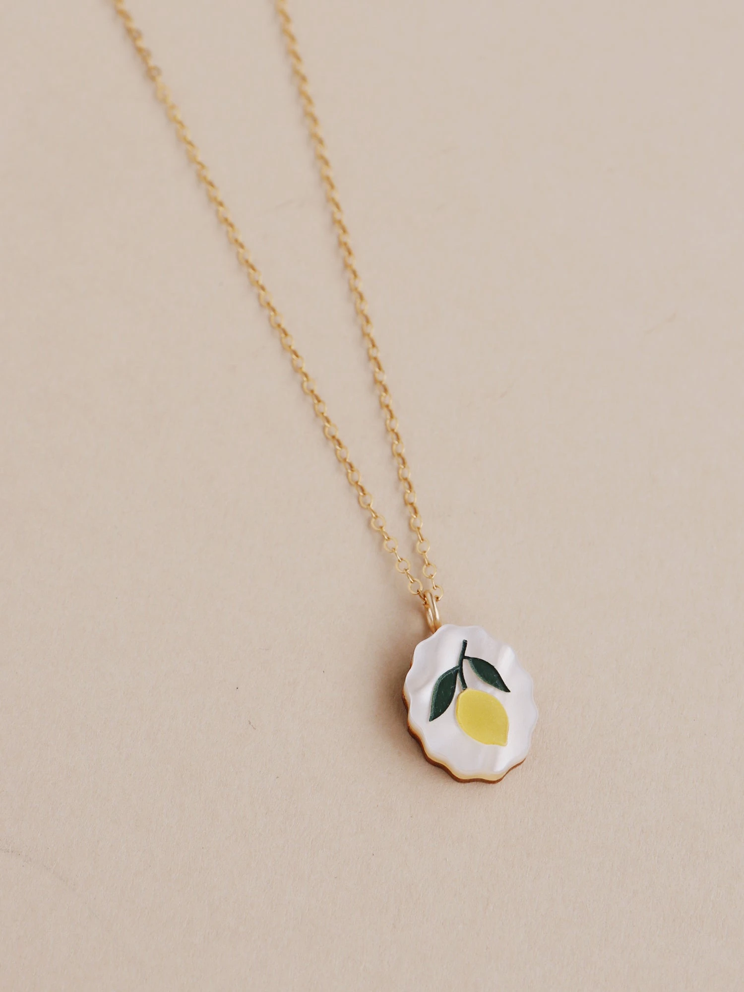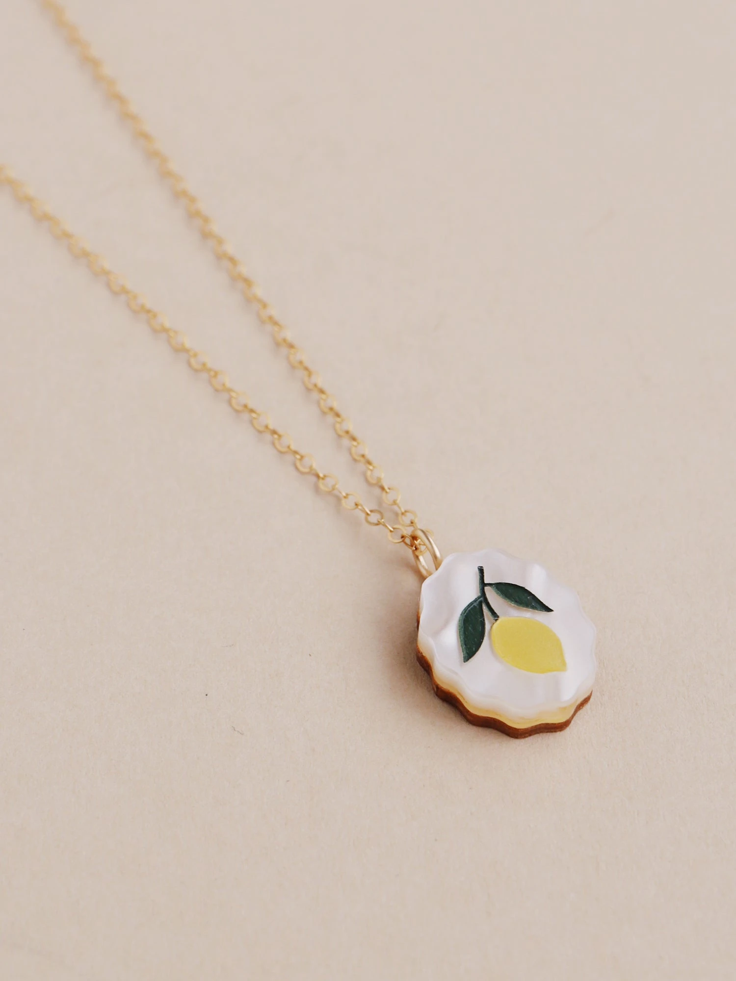 The perfect everyday essential, our lemon charm necklace is easy to wear. Inspired by vintage fruit stickers and Mediterranean tiles.Â