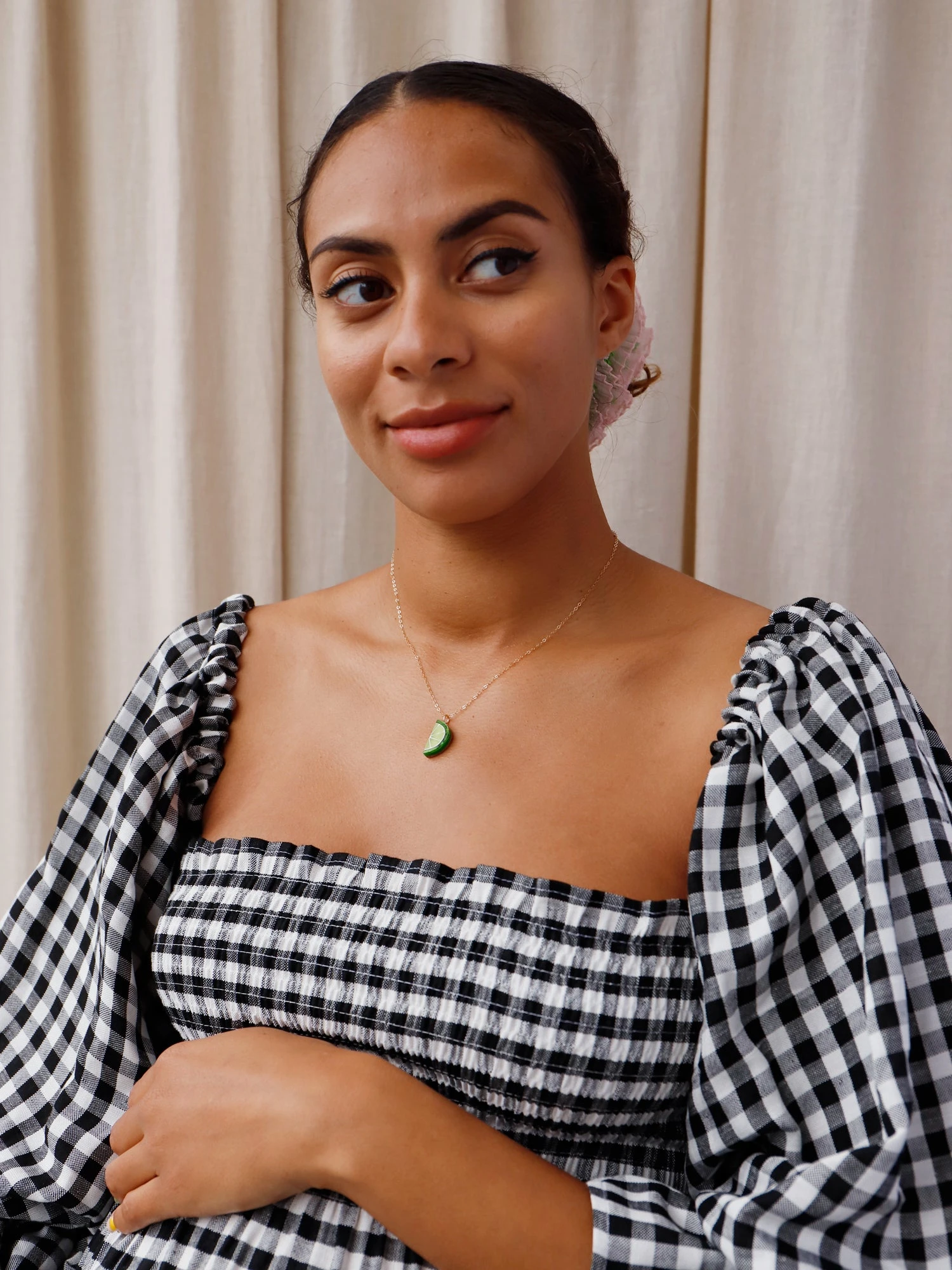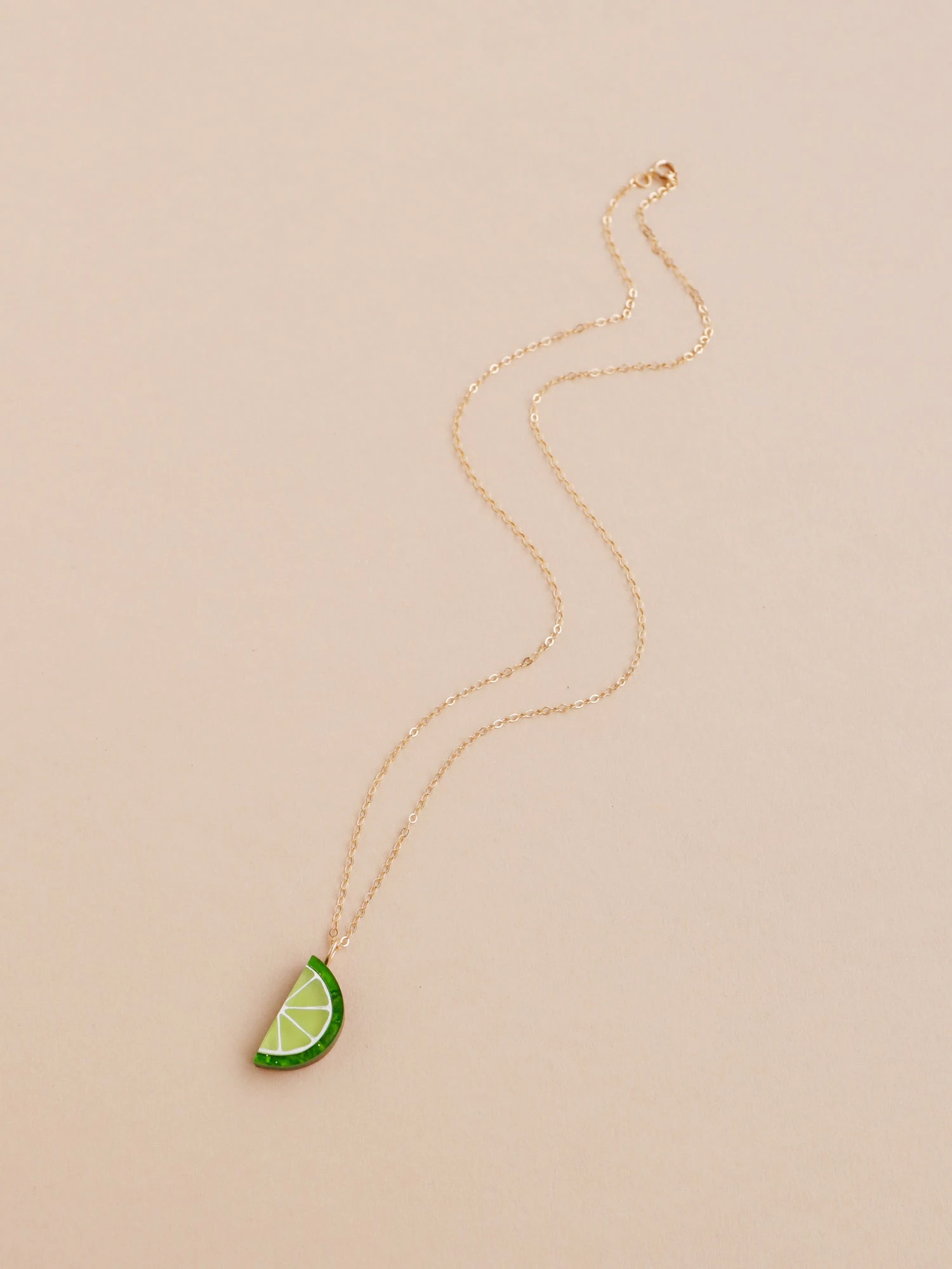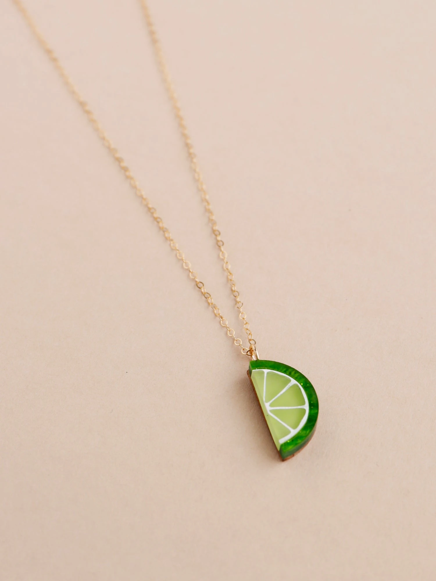 Add a zesty slice to your collection with our lime slice necklace! Made with acrylic, wood and 14k gold-filled findings.