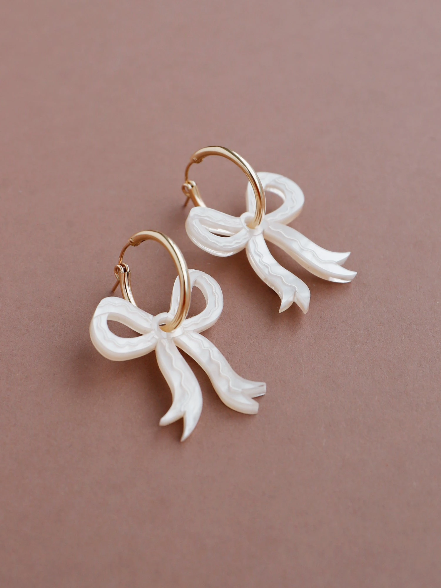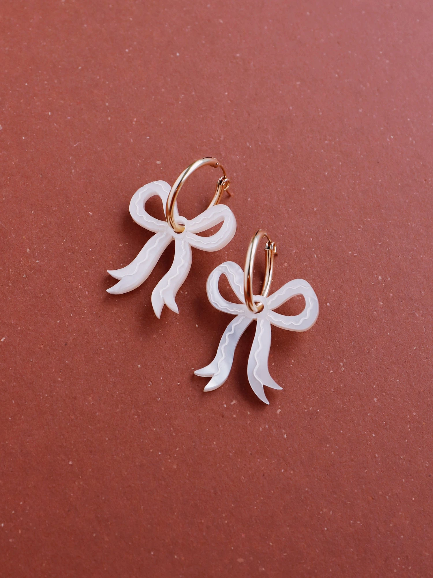 Romantic bow earrings made from velvety marbled acrylic with hand-inked details. Surprisingly lightweight so can be worn for extended periods of time.