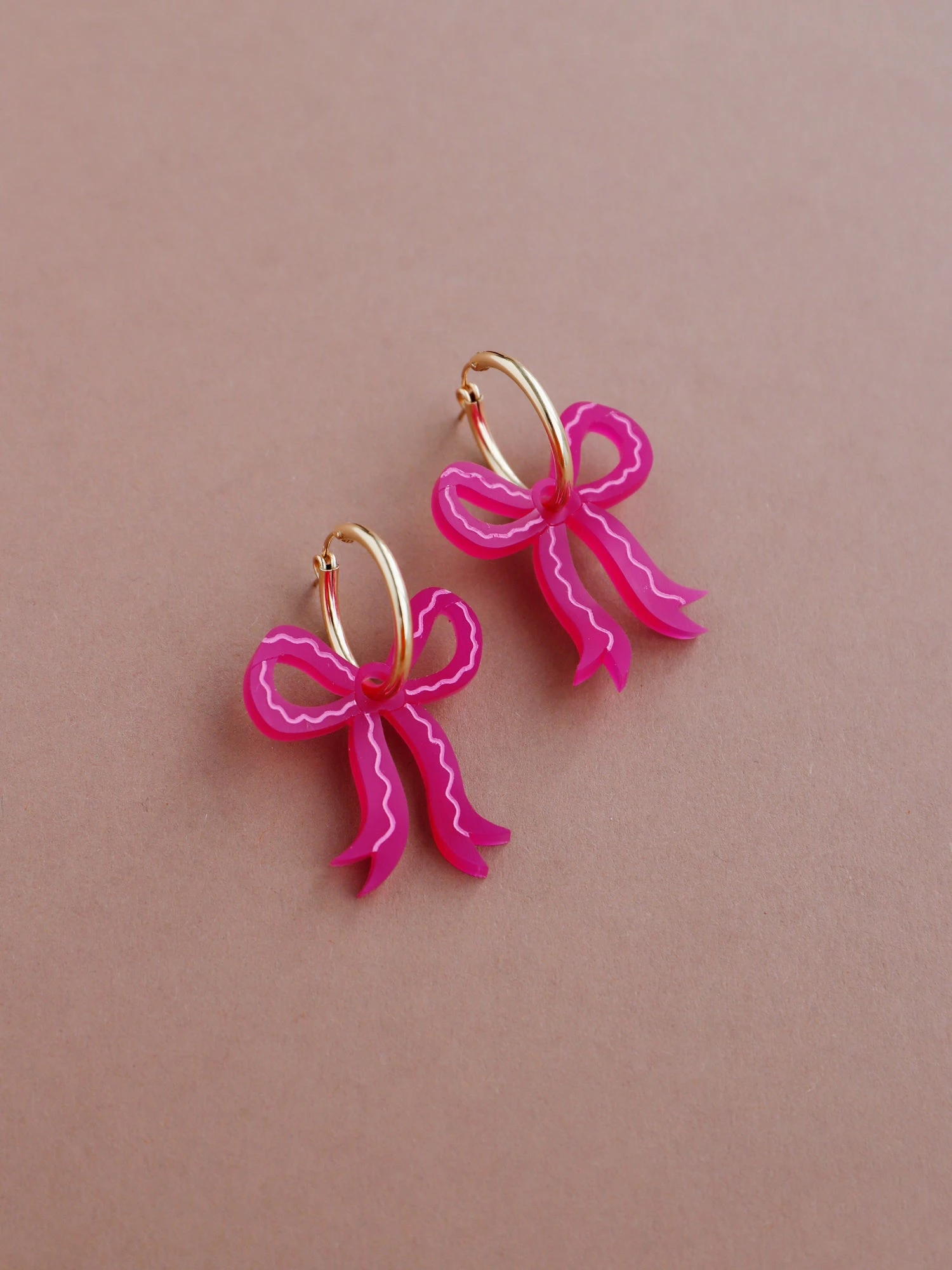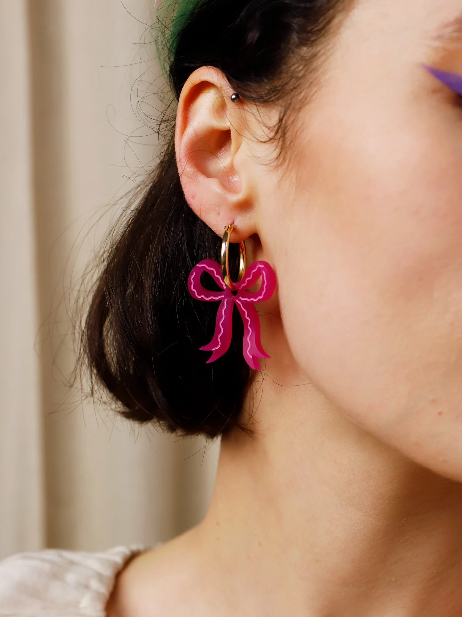 Romantic bow earrings made from velvety marbled acrylic with hand-inked details. Surprisingly lightweight so can be worn for extended periods of time.