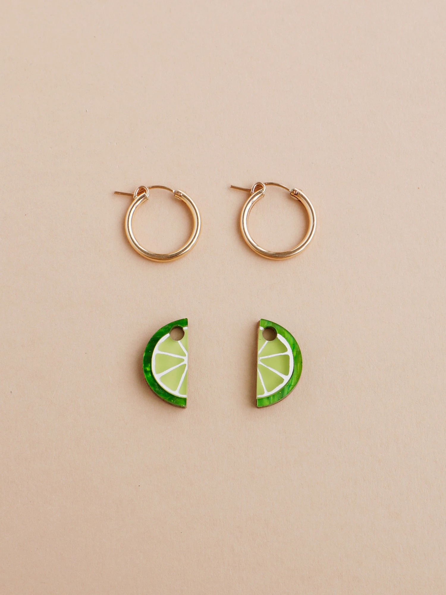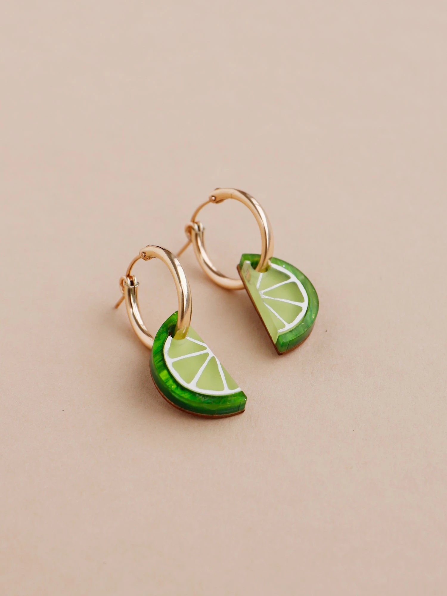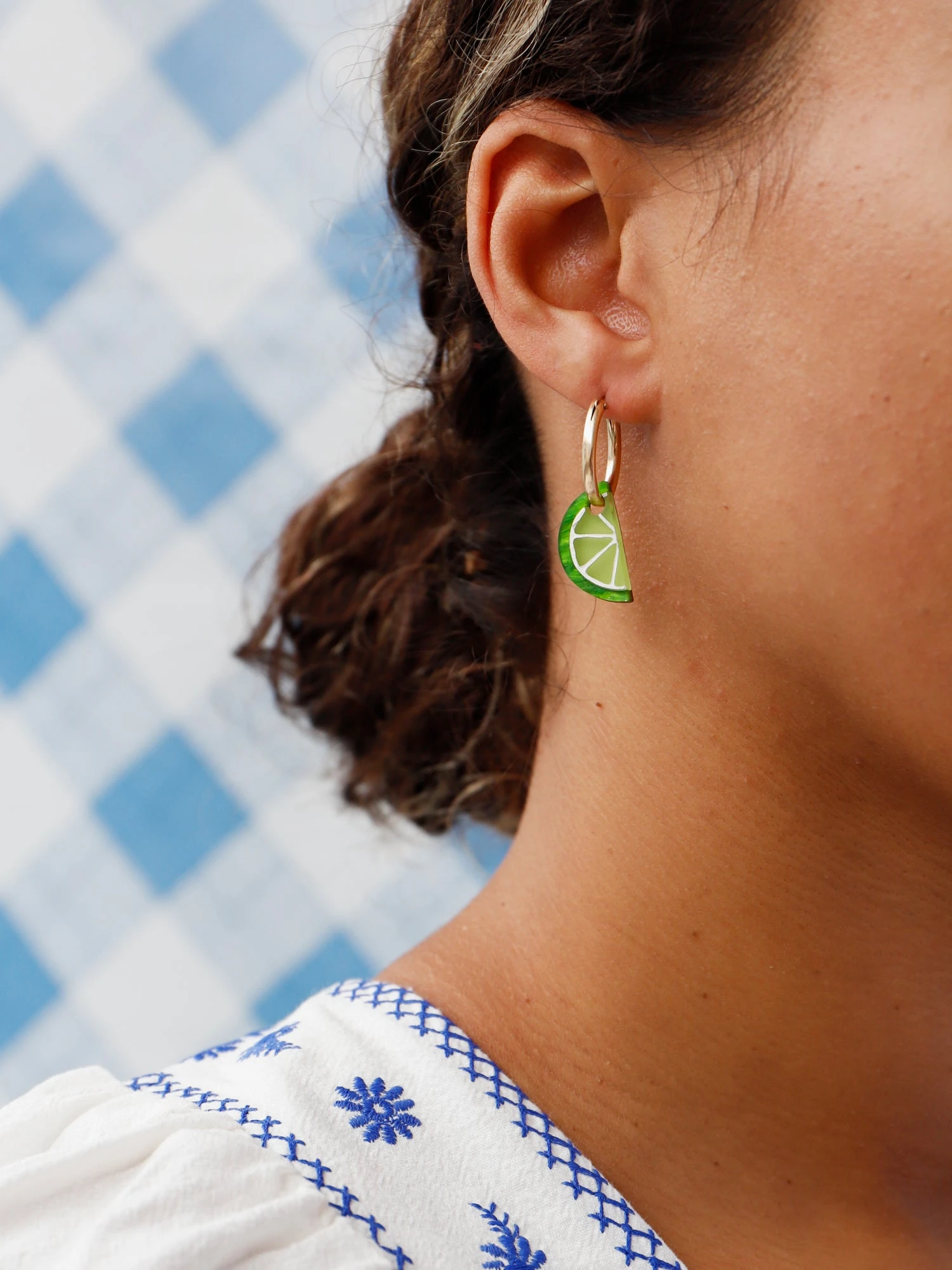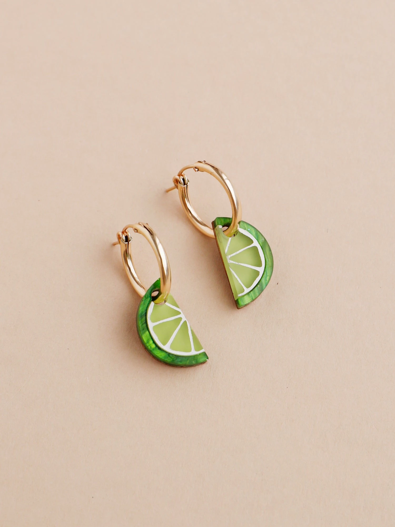 Squeeze some joy into your style with these zesty lime earrings, made from acrylic, wood and 14k gold-filled findings.Â