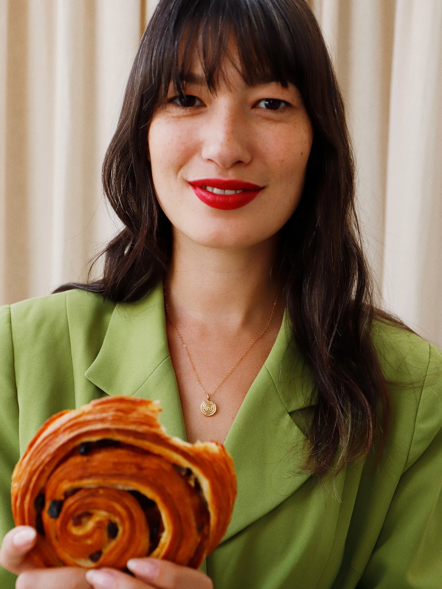 Hannah designed and hand-carved the pain au raisin pendant initially in wax. Each piece is then cast from a mould into recycled sterling silver using the the ancient technique of lost wax casting.