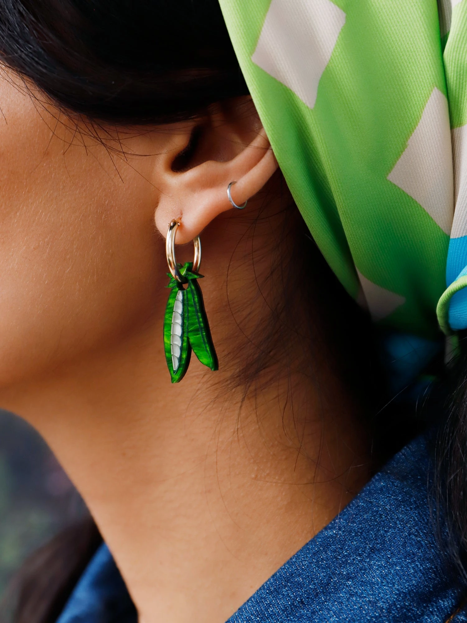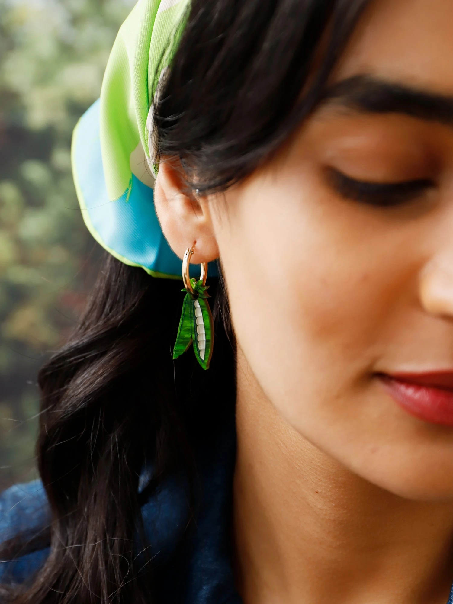 These whimsical pea earrings are perfect for layering or mix ‘n’ match with our other garden hoops.Â
