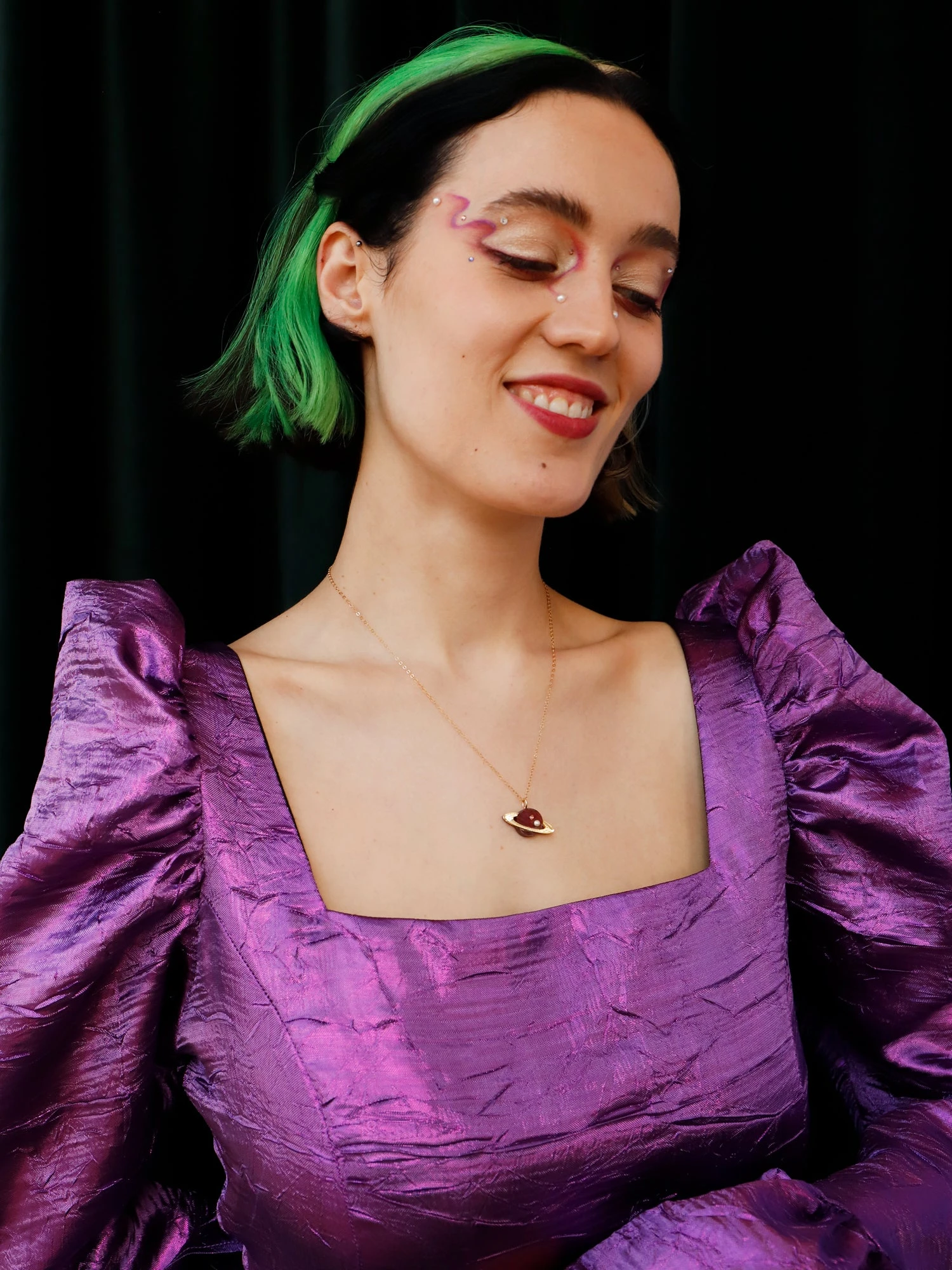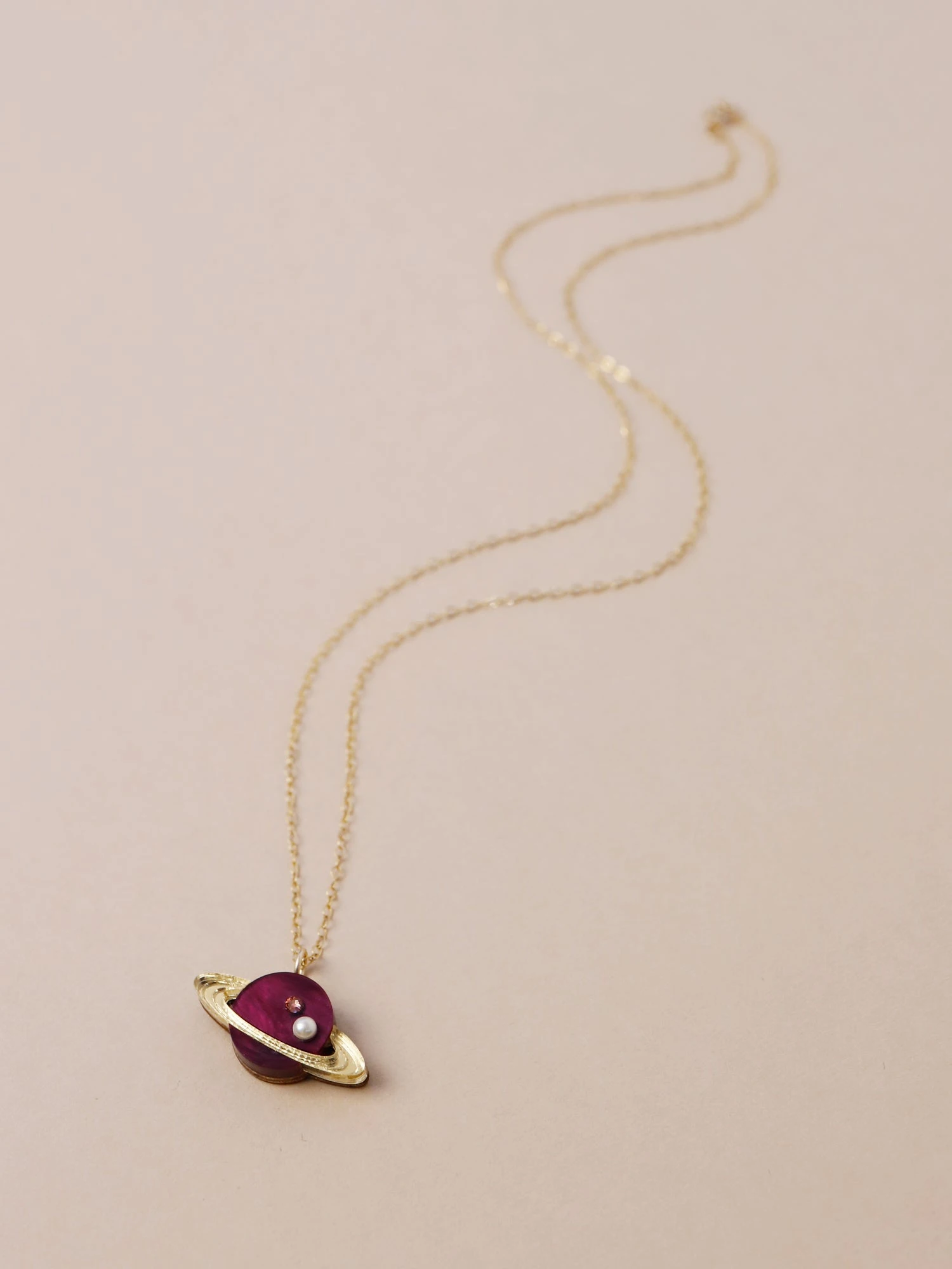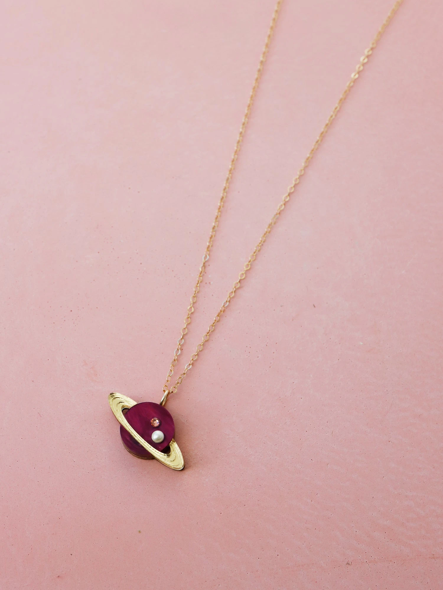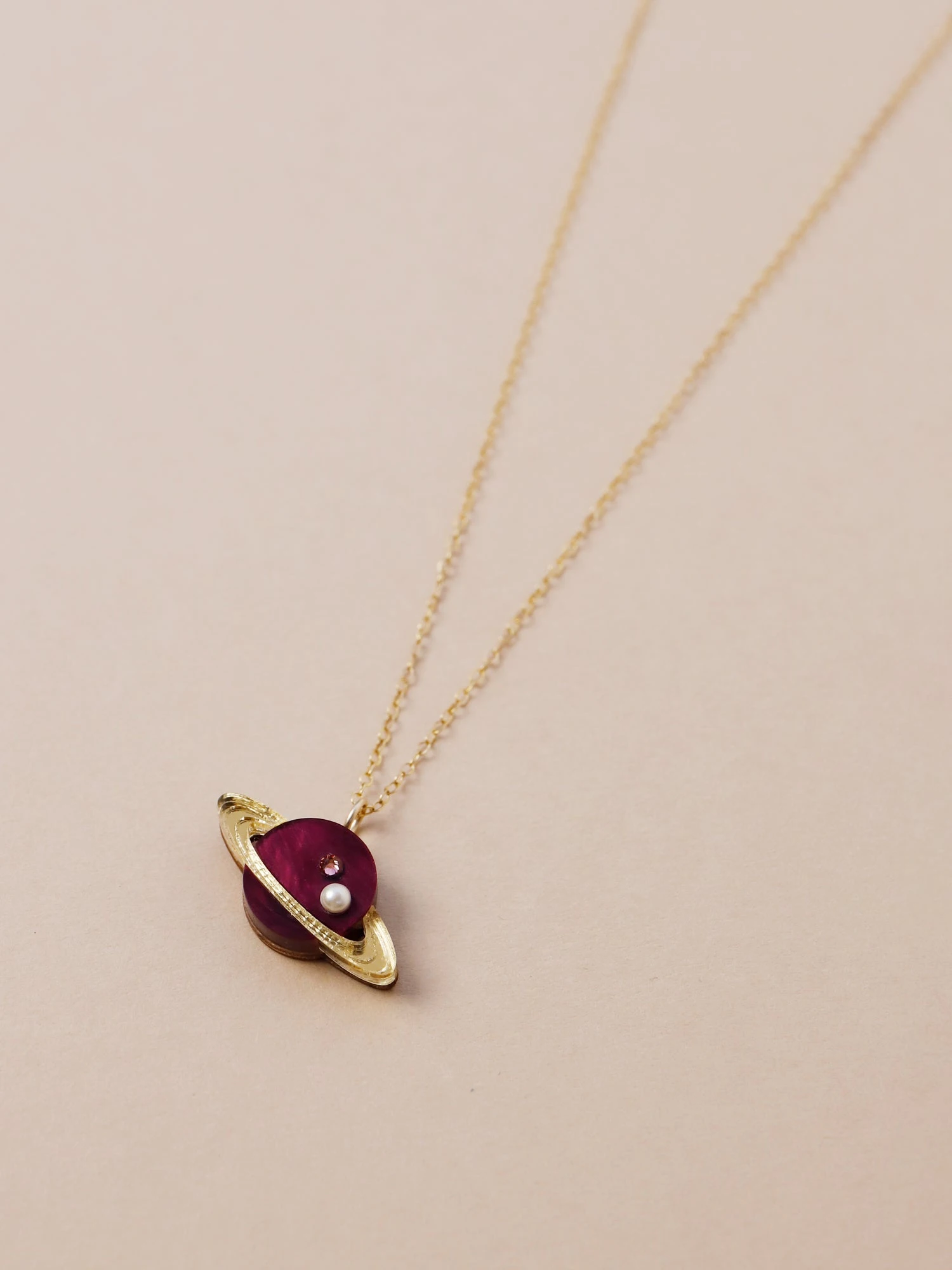 Our miniature version of this magical planet comes in pearlescent cherry, embellished with a high quality glass pearl & crystal.