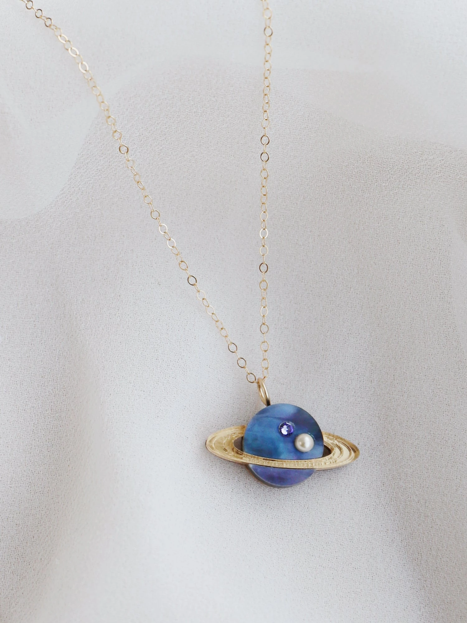 Our miniature version of this magical planet comes in marbled midnight acrylic, embellished with a high quality glass pearl & crystal.