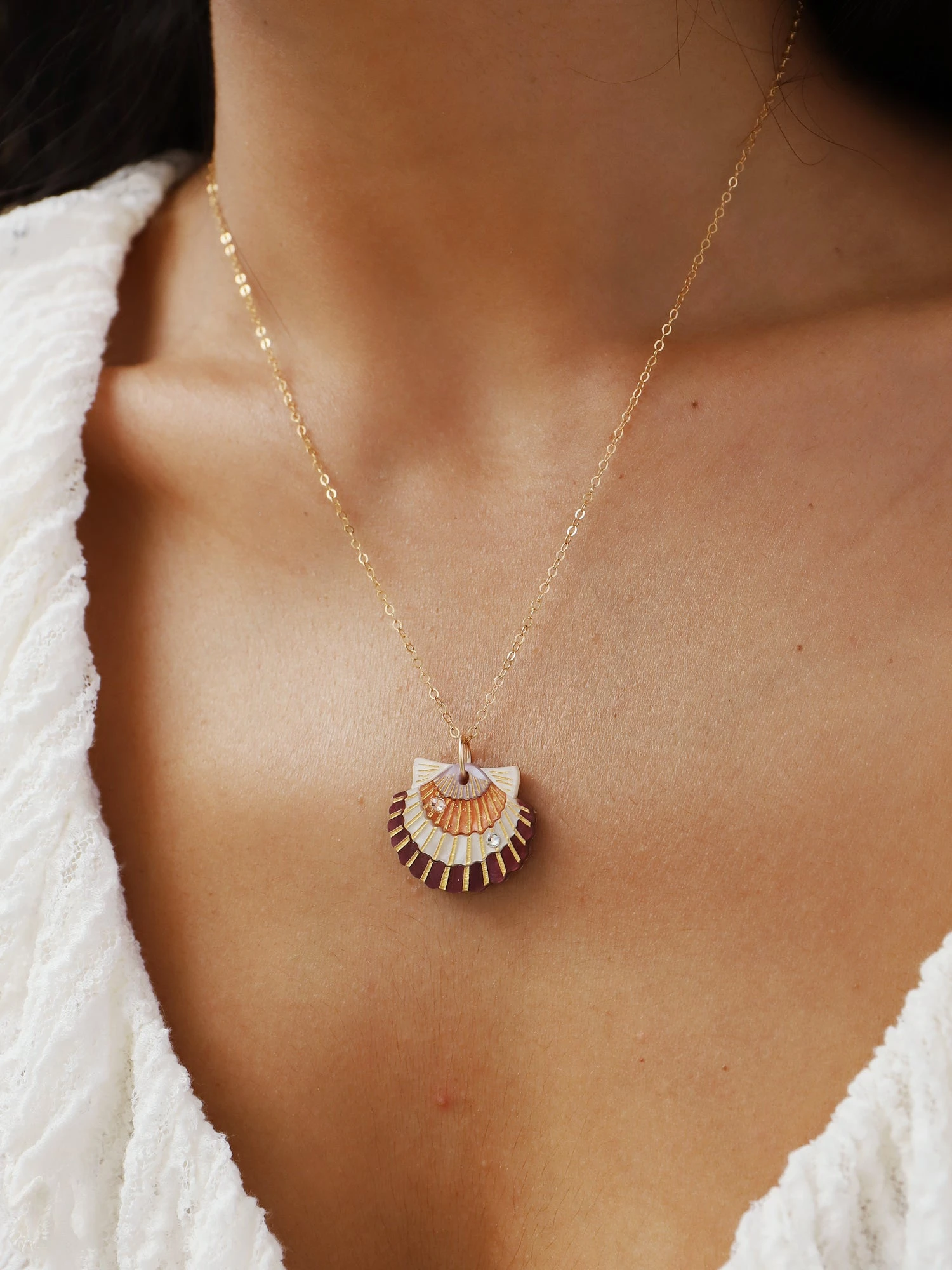 Get ready for a sunny day at the beach with our scallop shell necklace! Our hand-crafted scallop shell necklace is made with high quality crystals and hand-inked details.Â