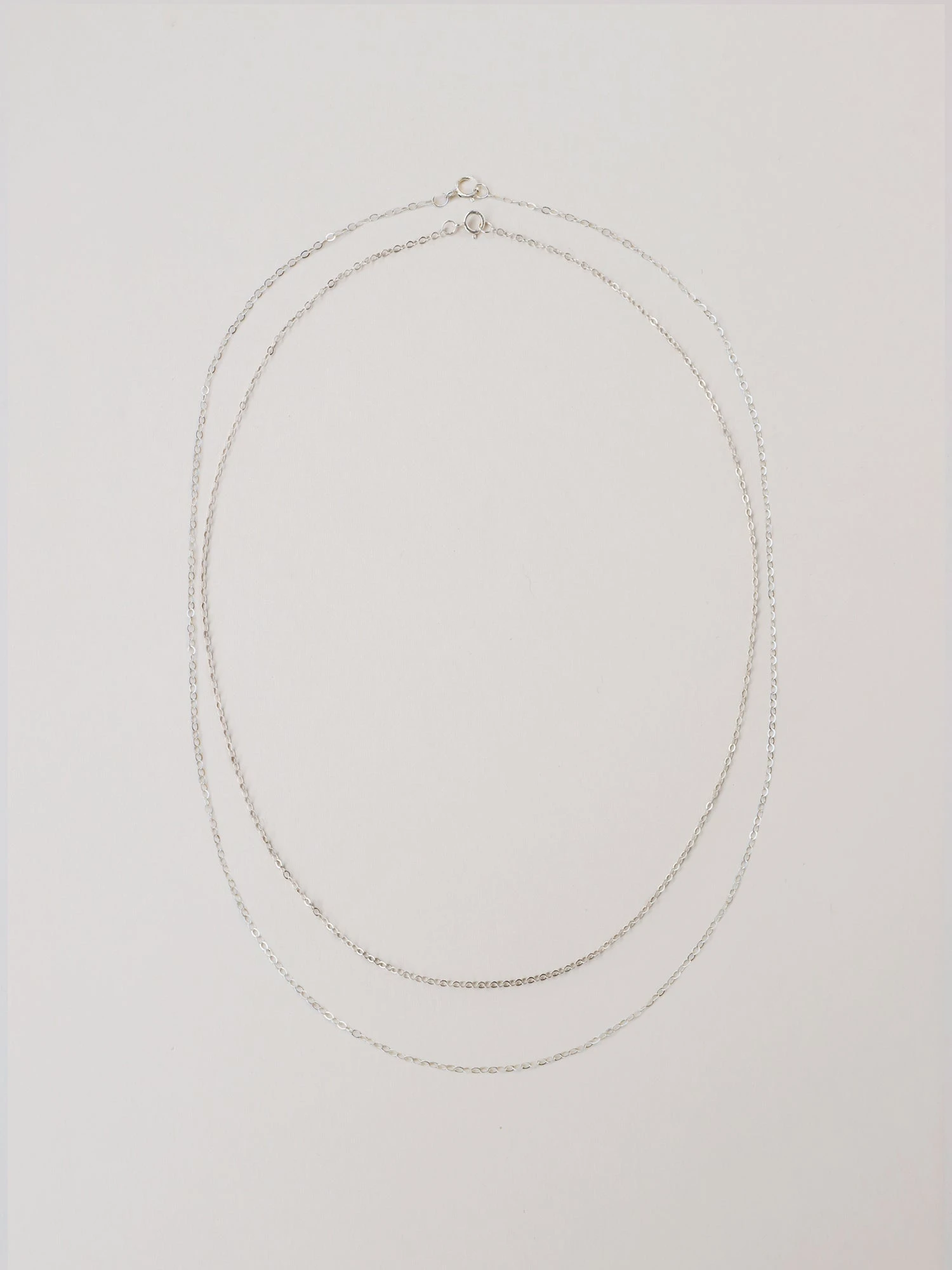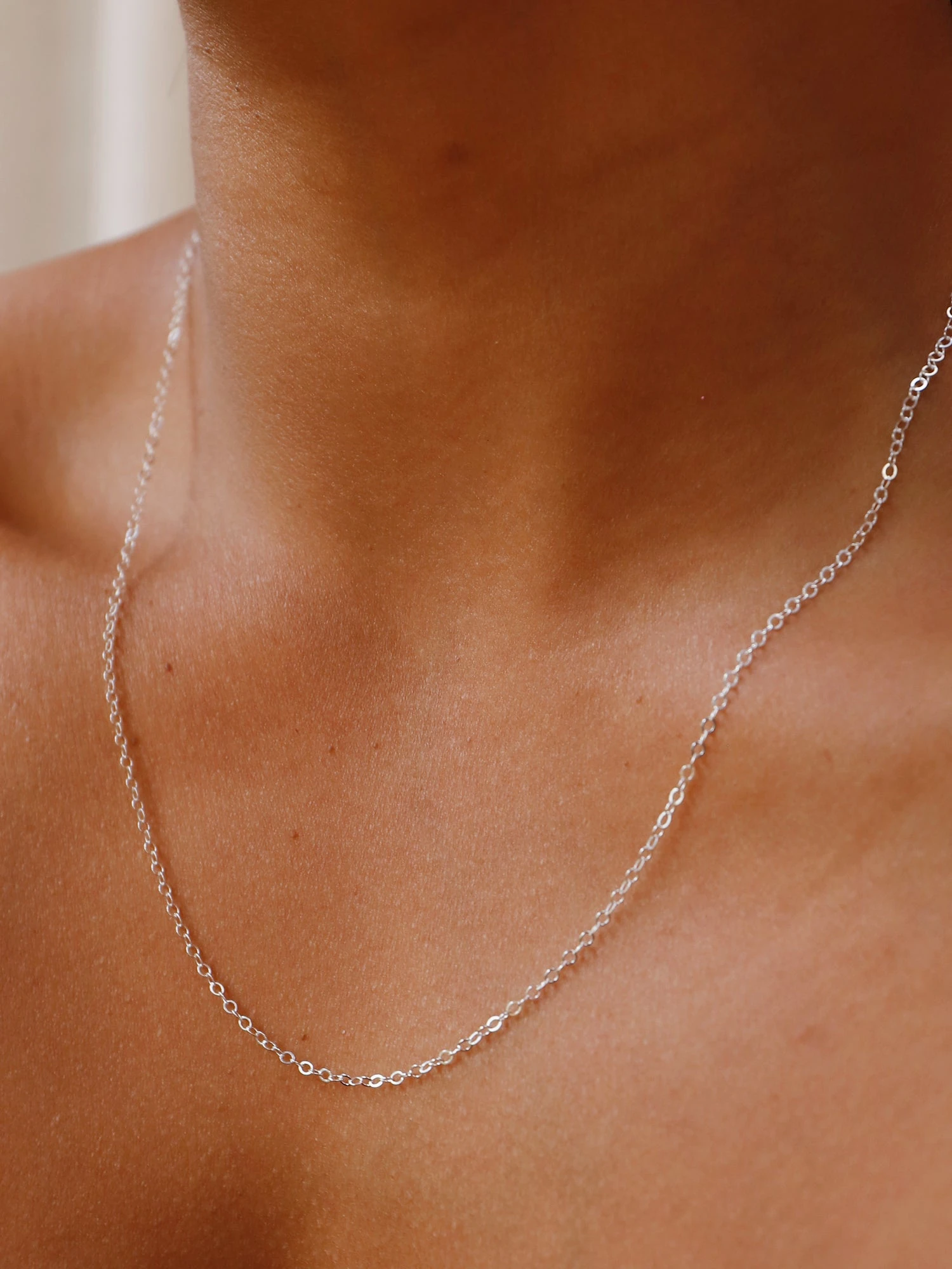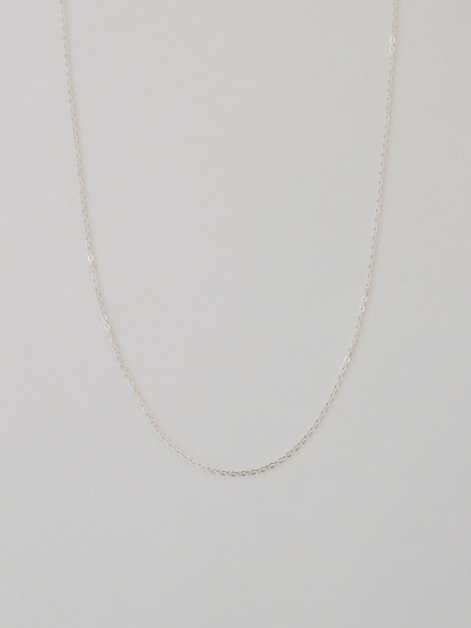 A fine sterling silver necklace chain with clasp opening, available in two sizes.