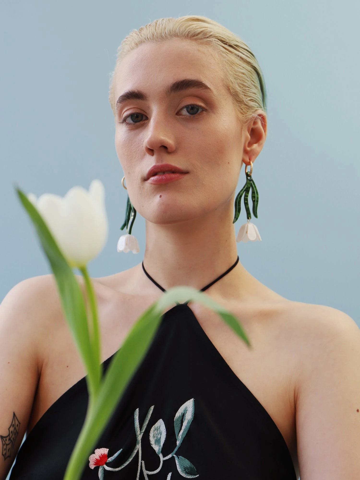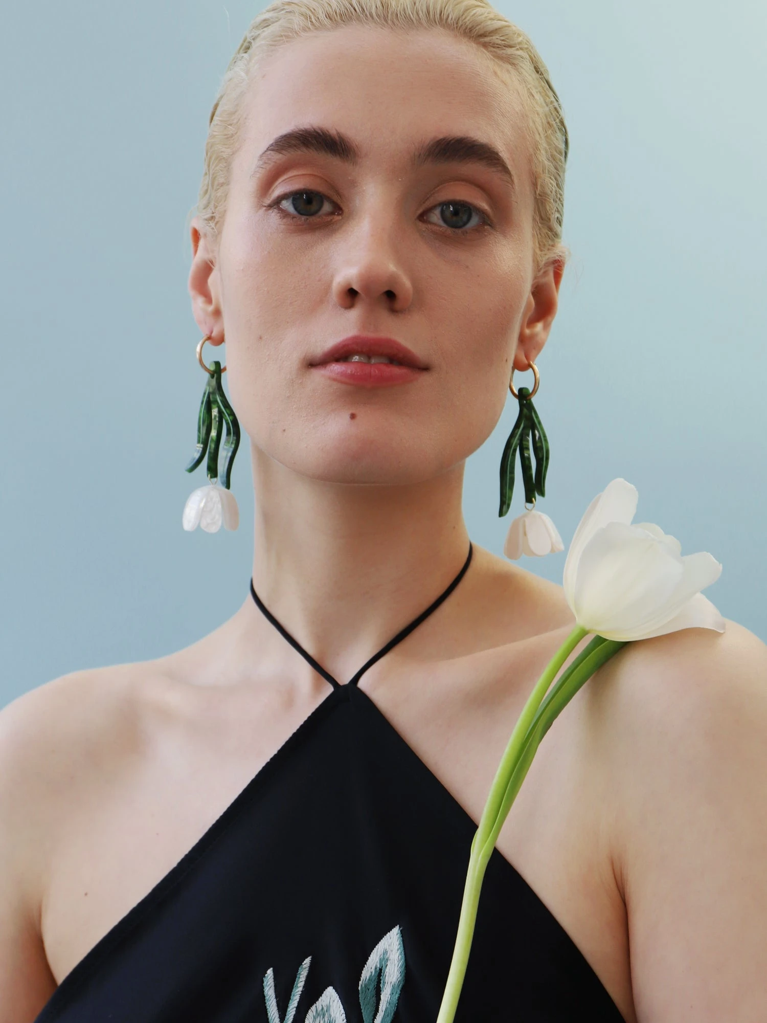 Inspired by sculptural flowers, our Tulip Statement Hoop earrings are lightweight and individually hand-crafted. Finished with 14k gold-filled findings and high-quality glass pearls.