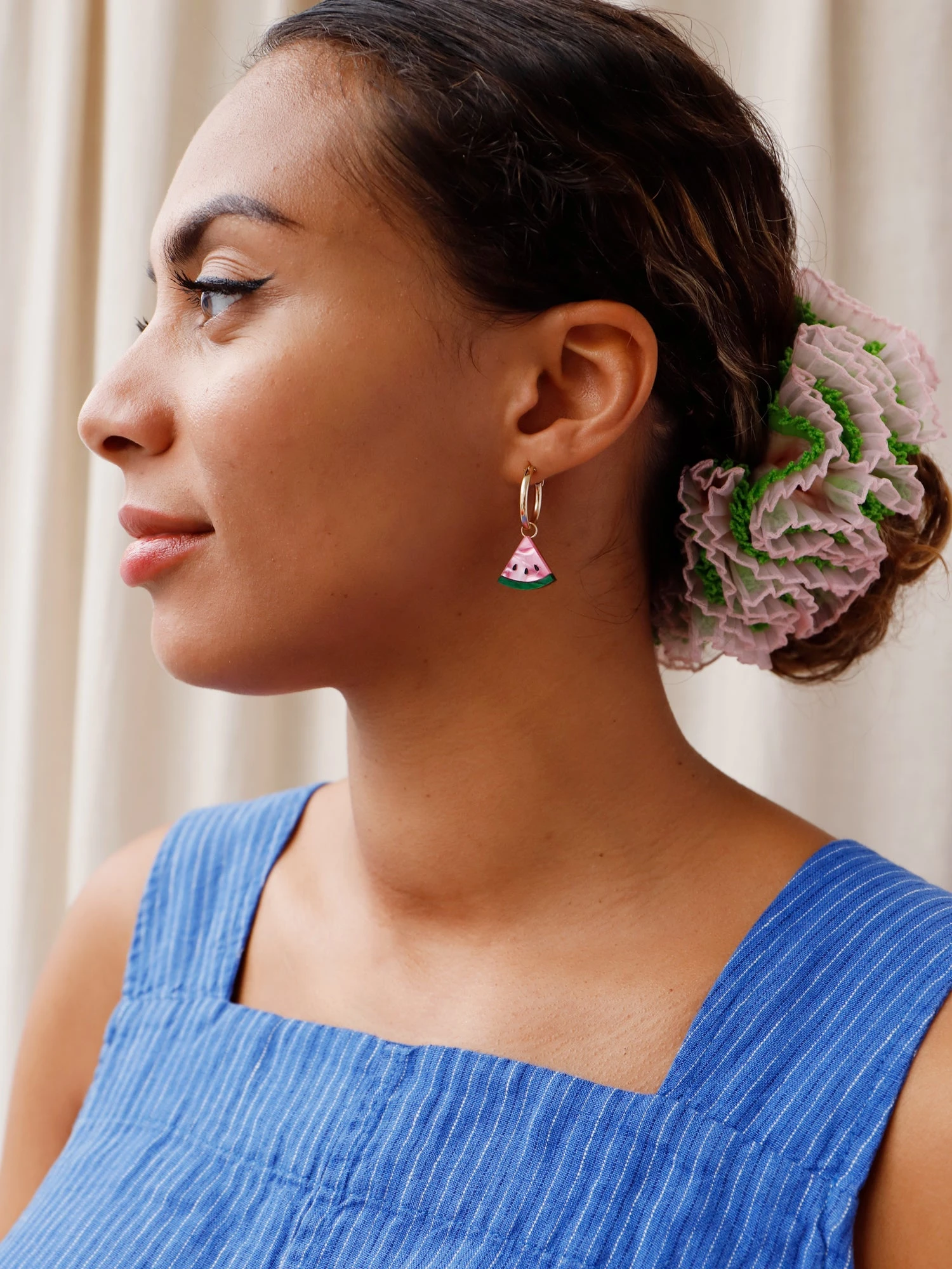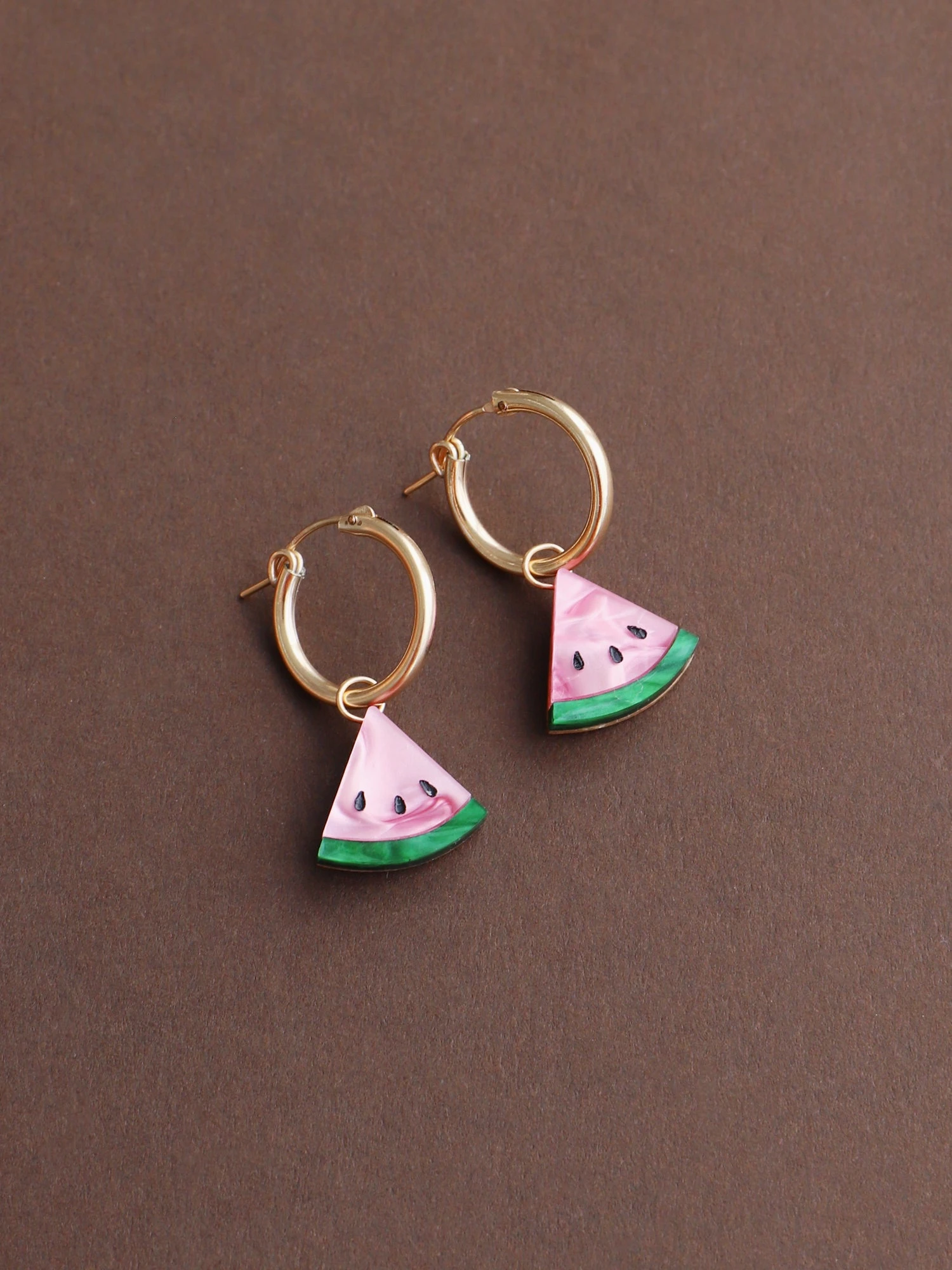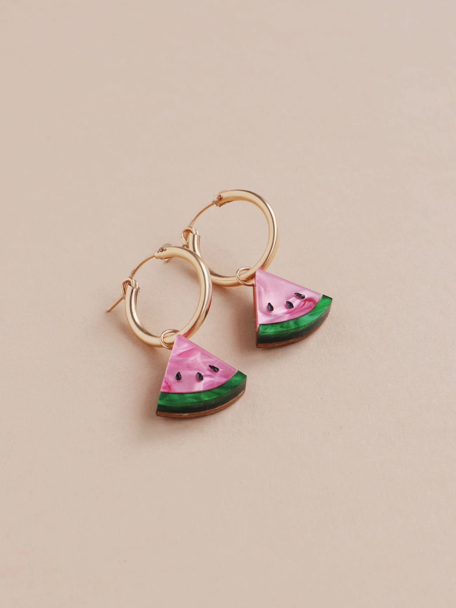 Our juicy watermelon hoops are made from acrylic with hand-inked details.